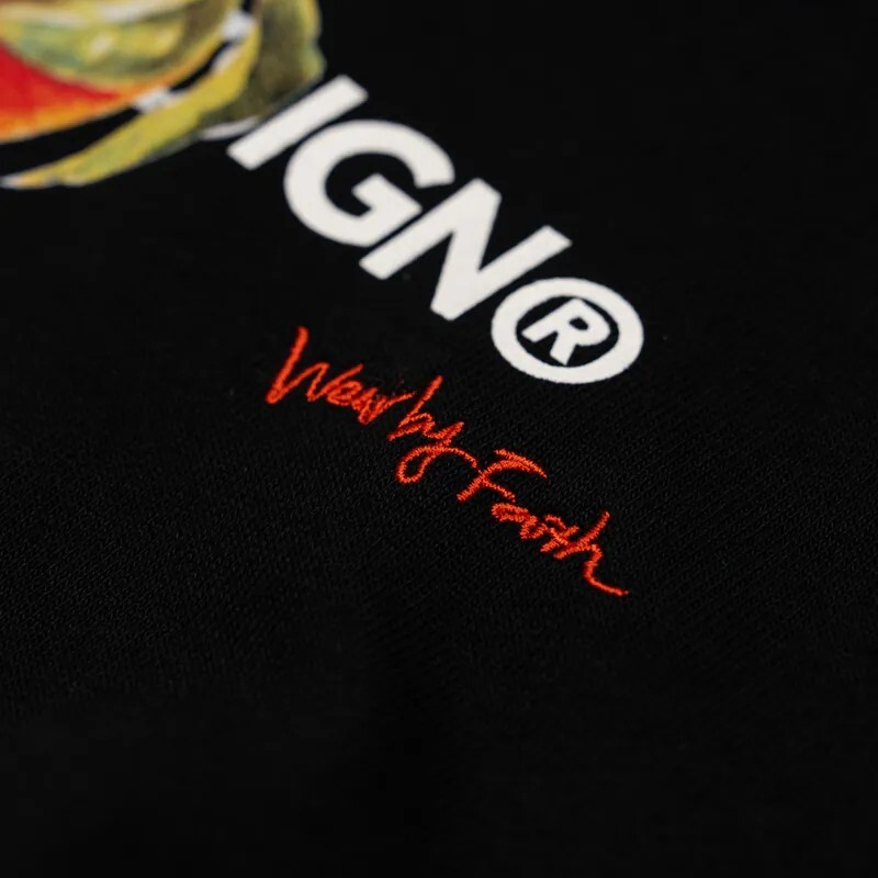 正面以橘子與品牌標準字呈現,橘色標語小刺繡點綴