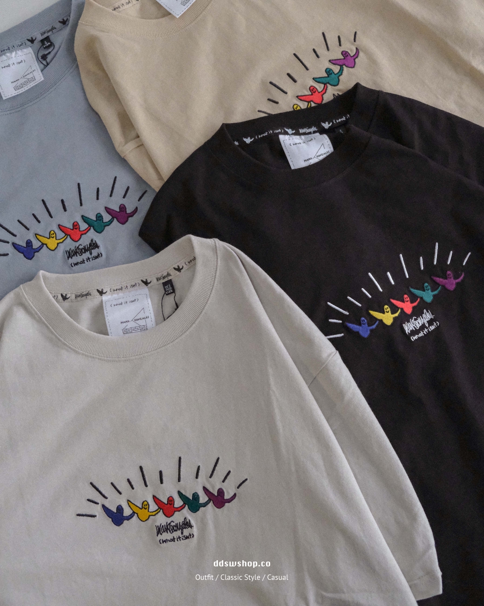 Mark Gonzales 短袖 國外限定款 刺繡Logo 四格塗鴉背圖 黑色 米白色 奶茶色 霧藍色