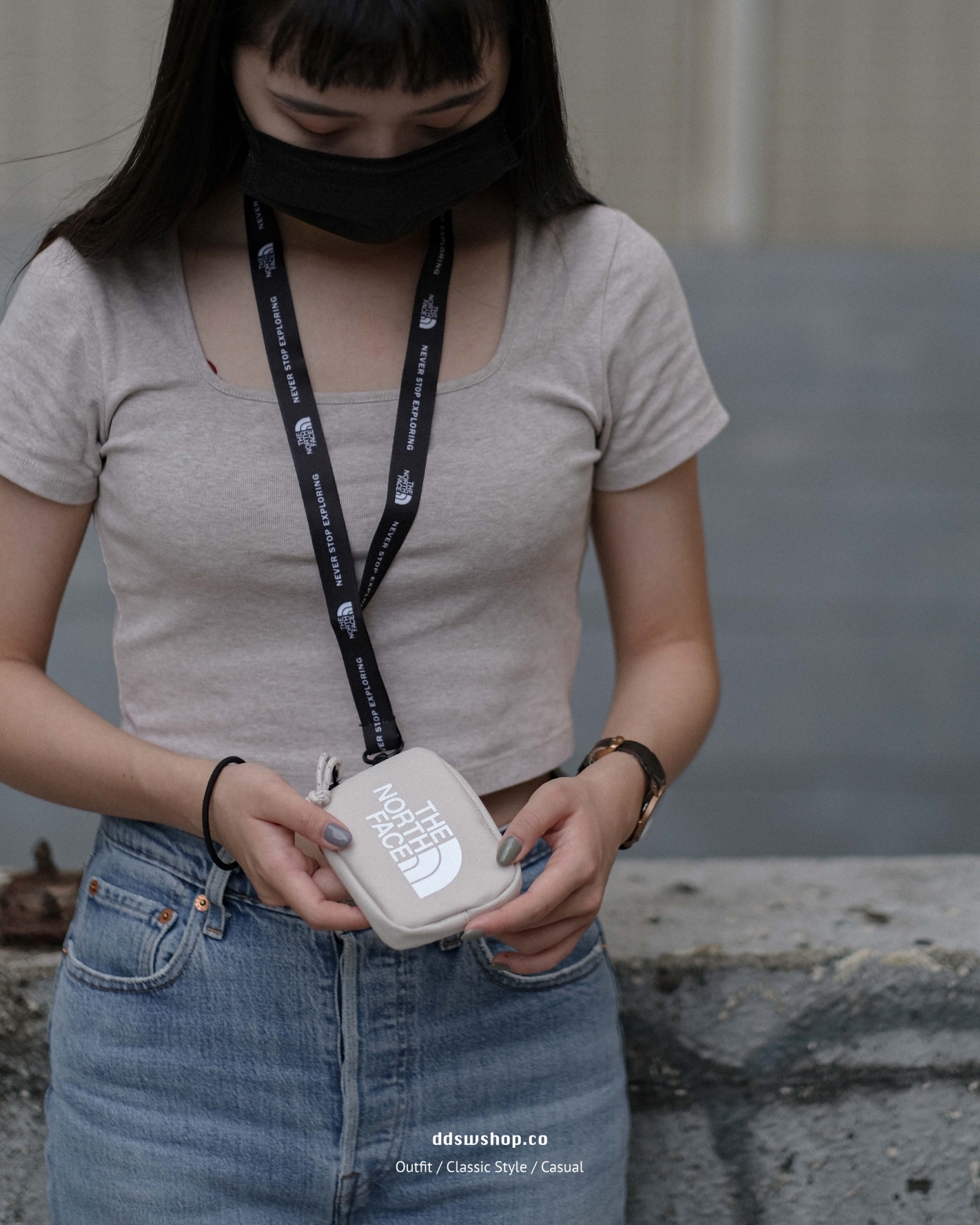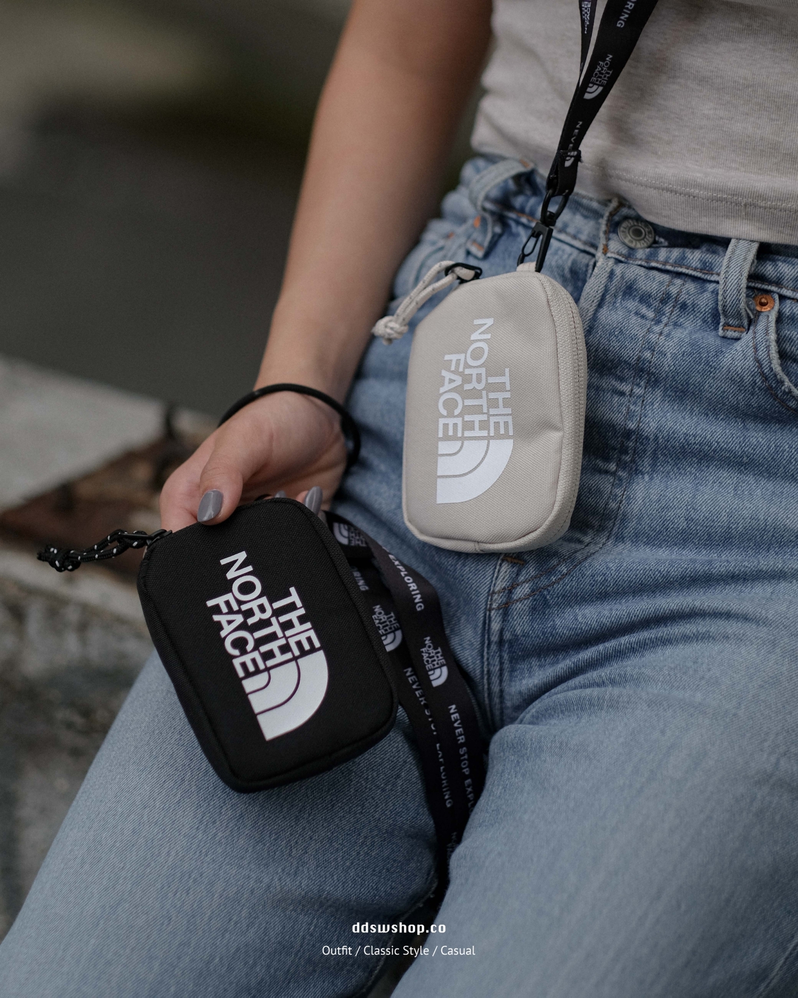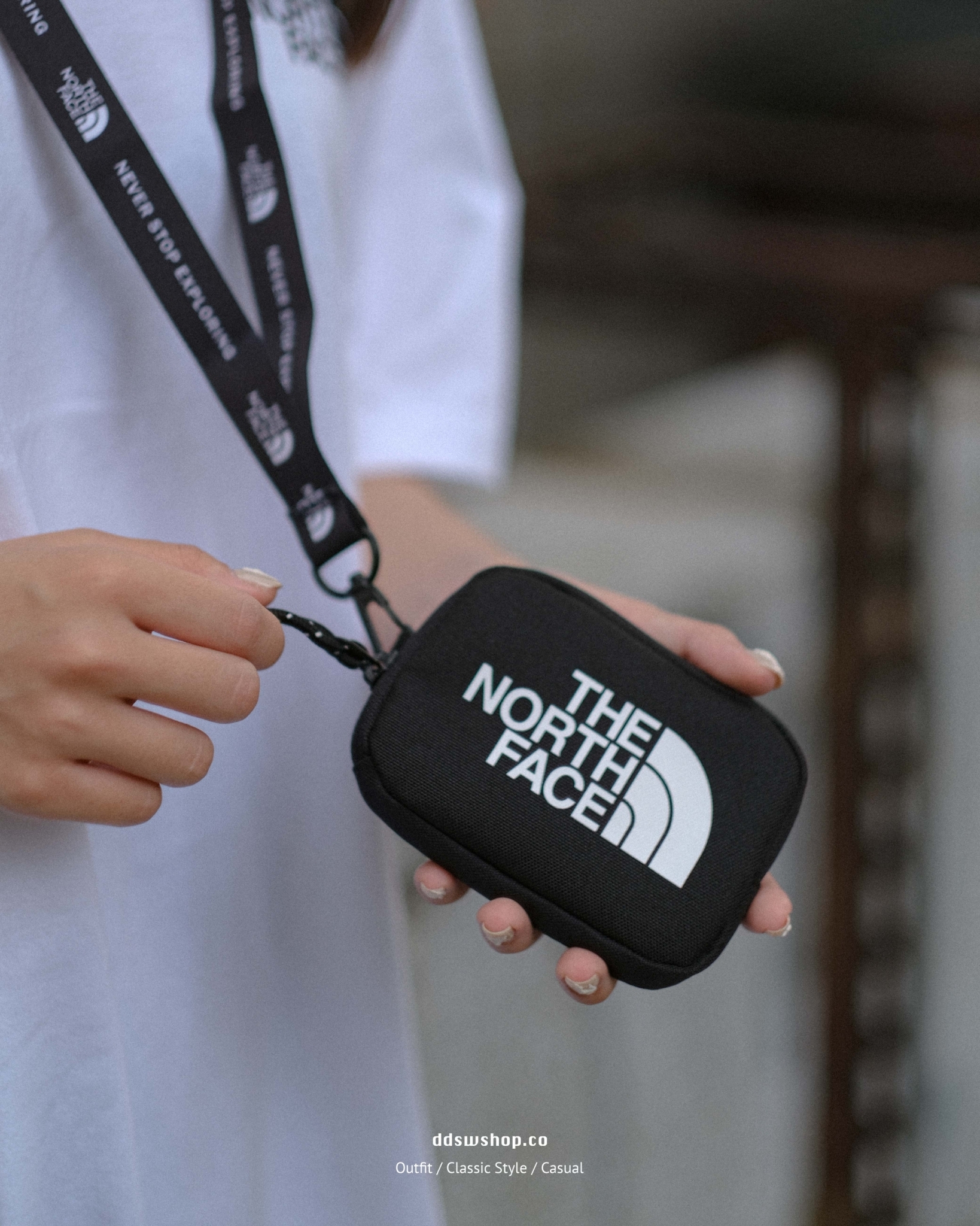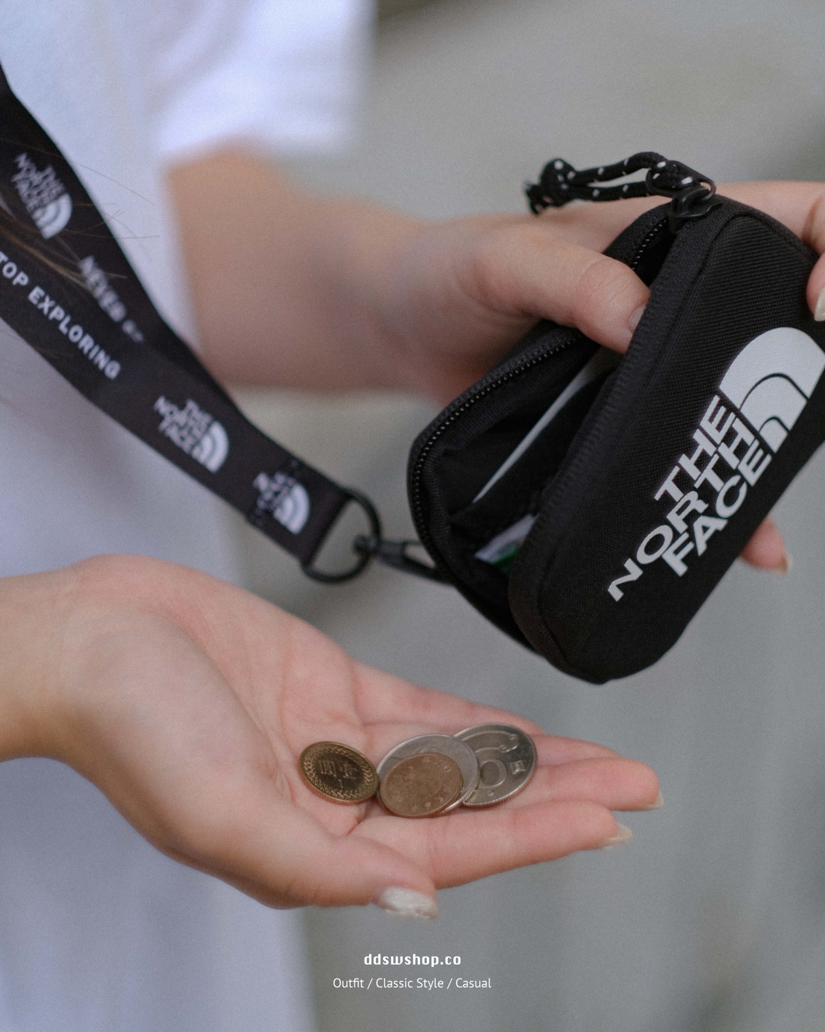 The North Face 包包 掛繩零錢包 黑色 白色