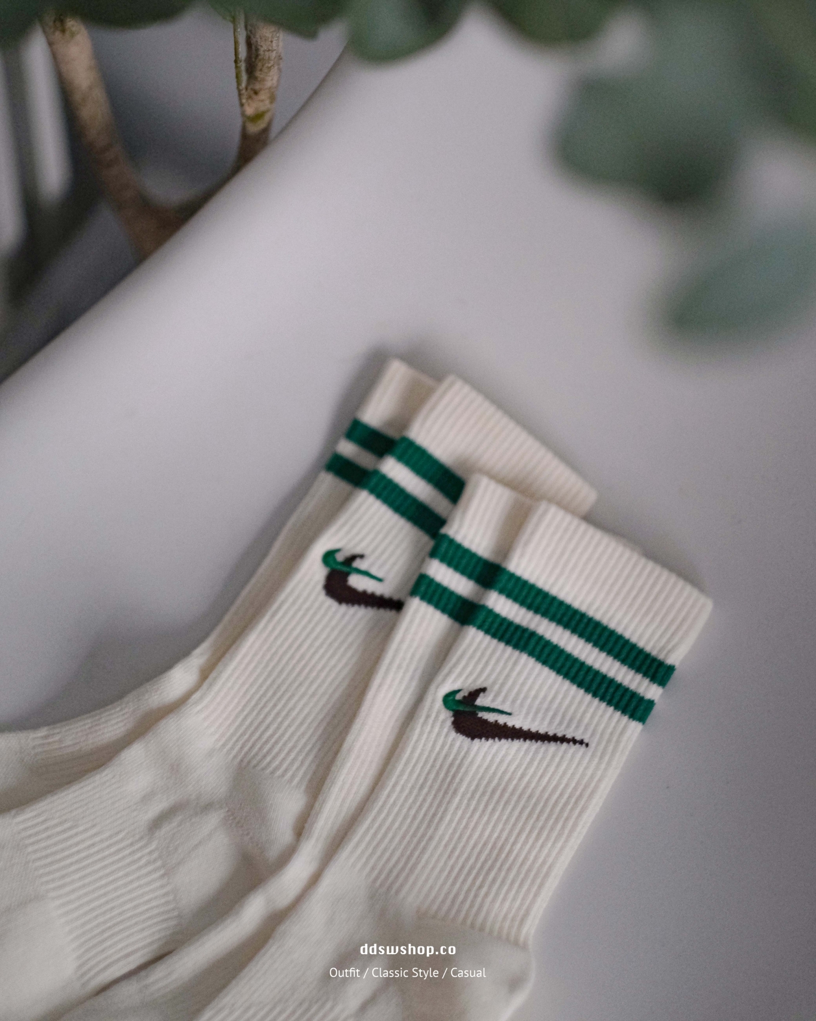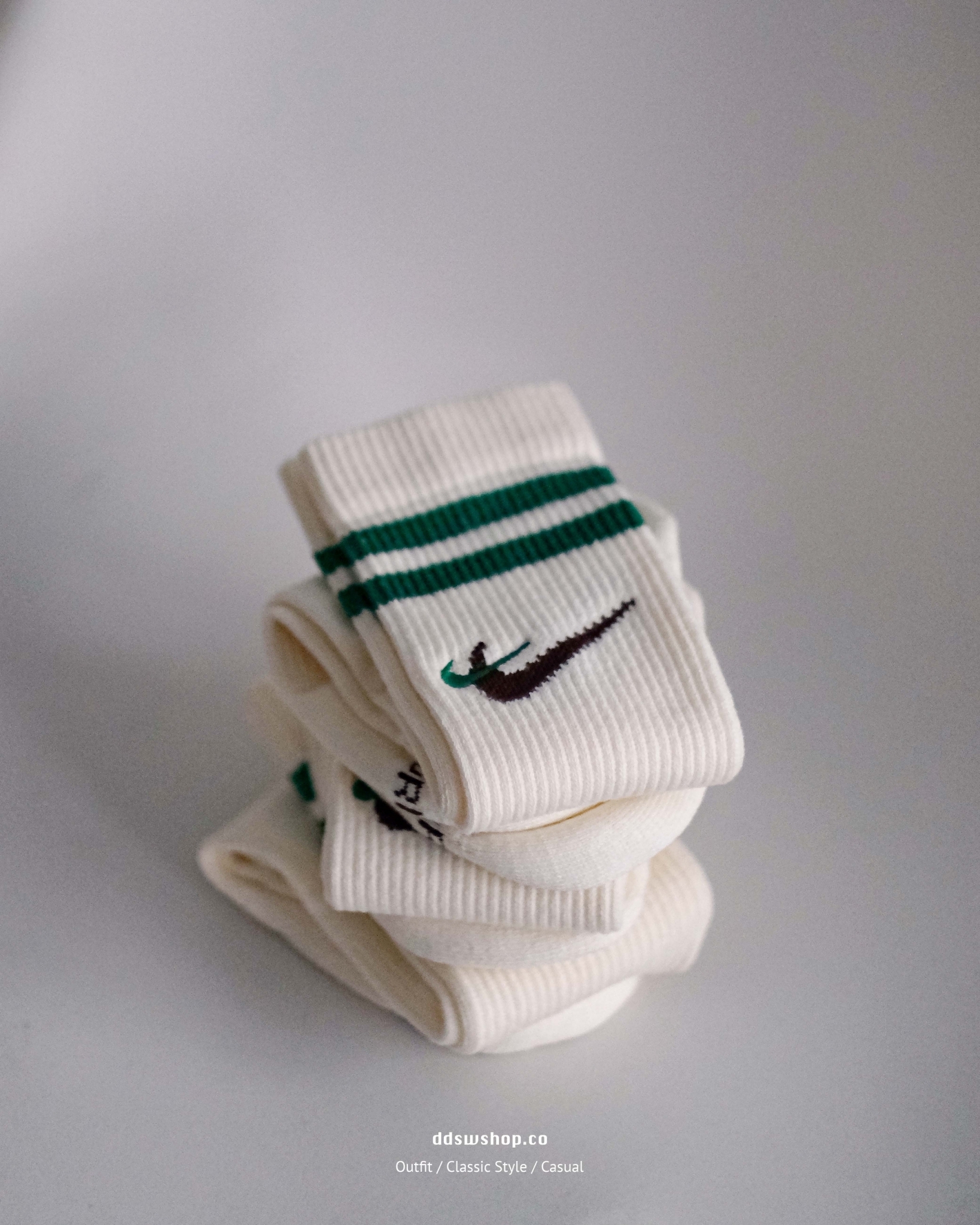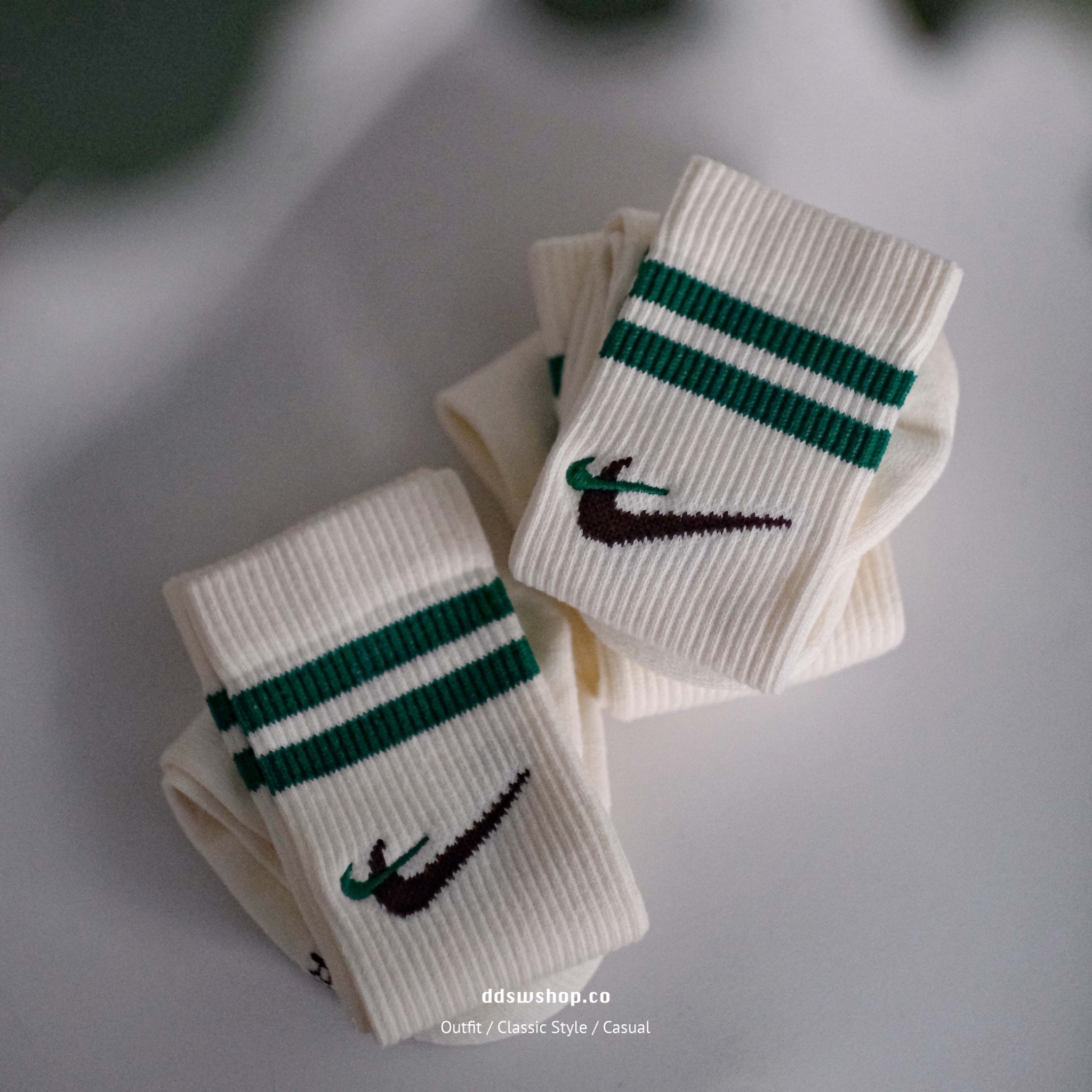 Nike Everyday Plus Cushioned 襪子 長襪 米白 綠色 刺繡Logo 雙勾 條紋 DQ9165-133