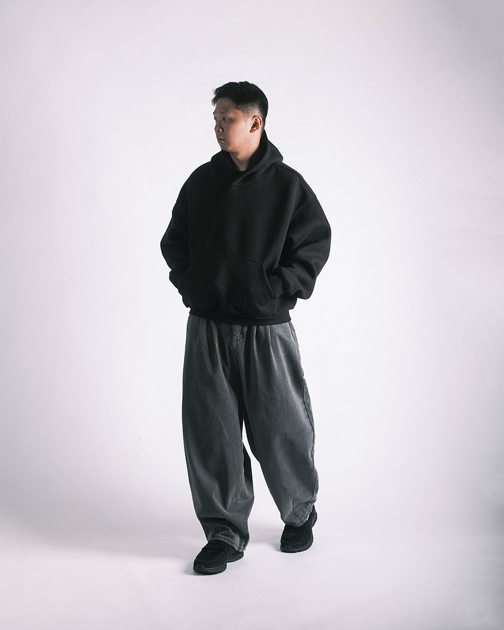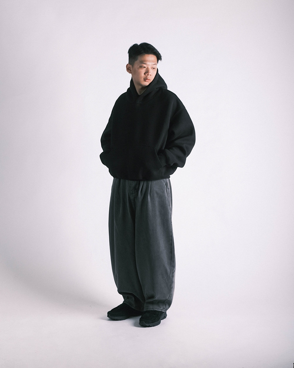 一件帽踢一件繭型褲整體搭配舊非常好看