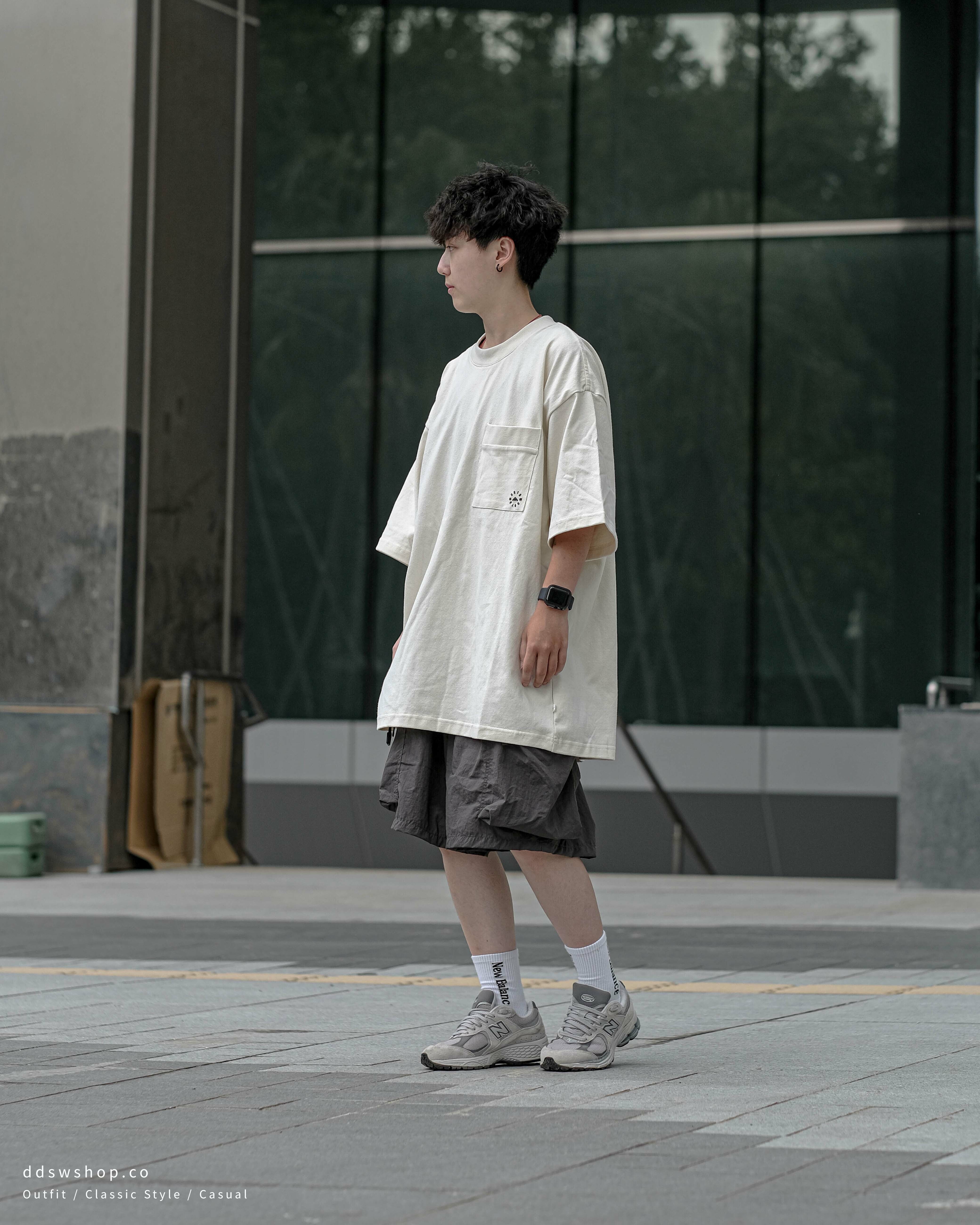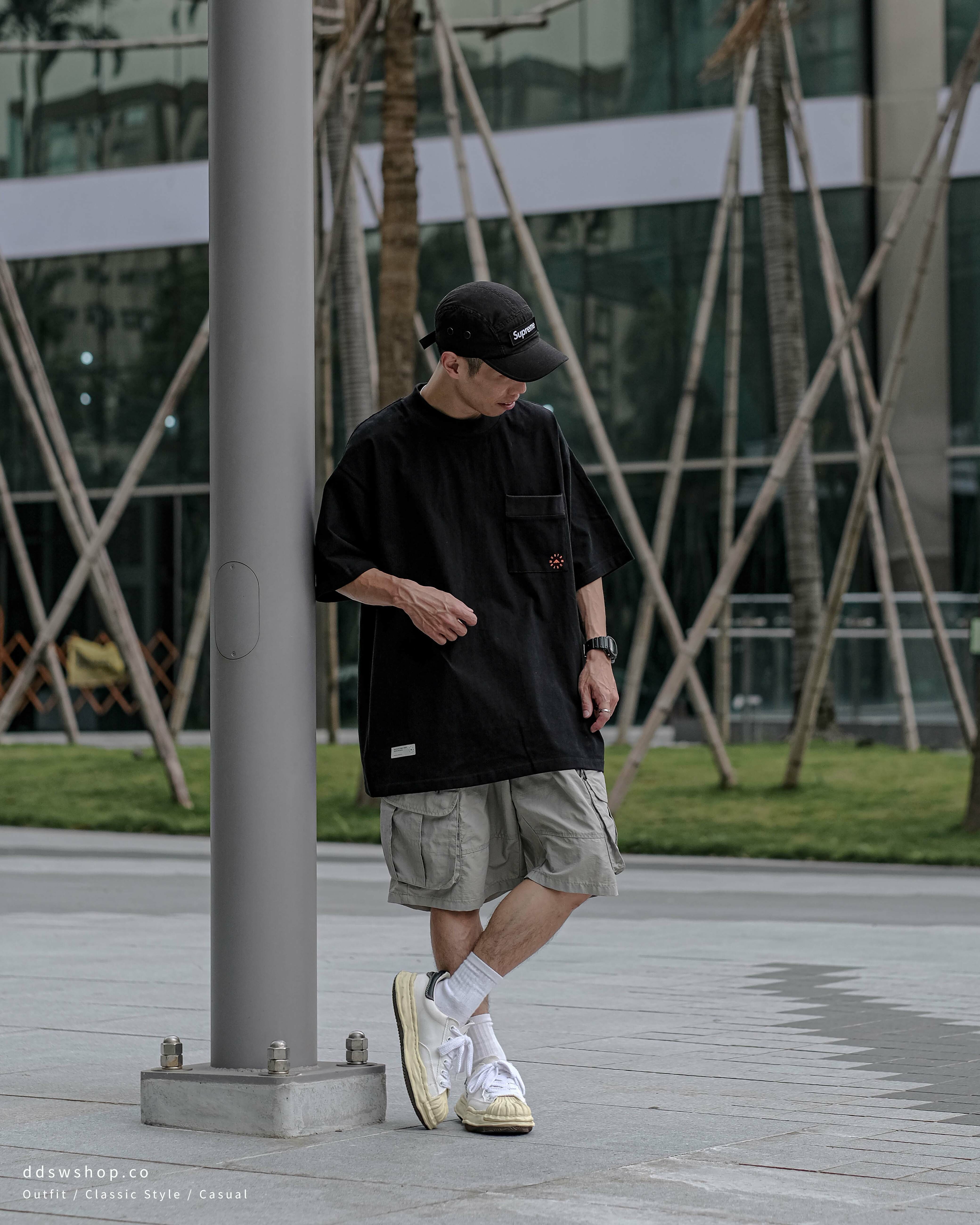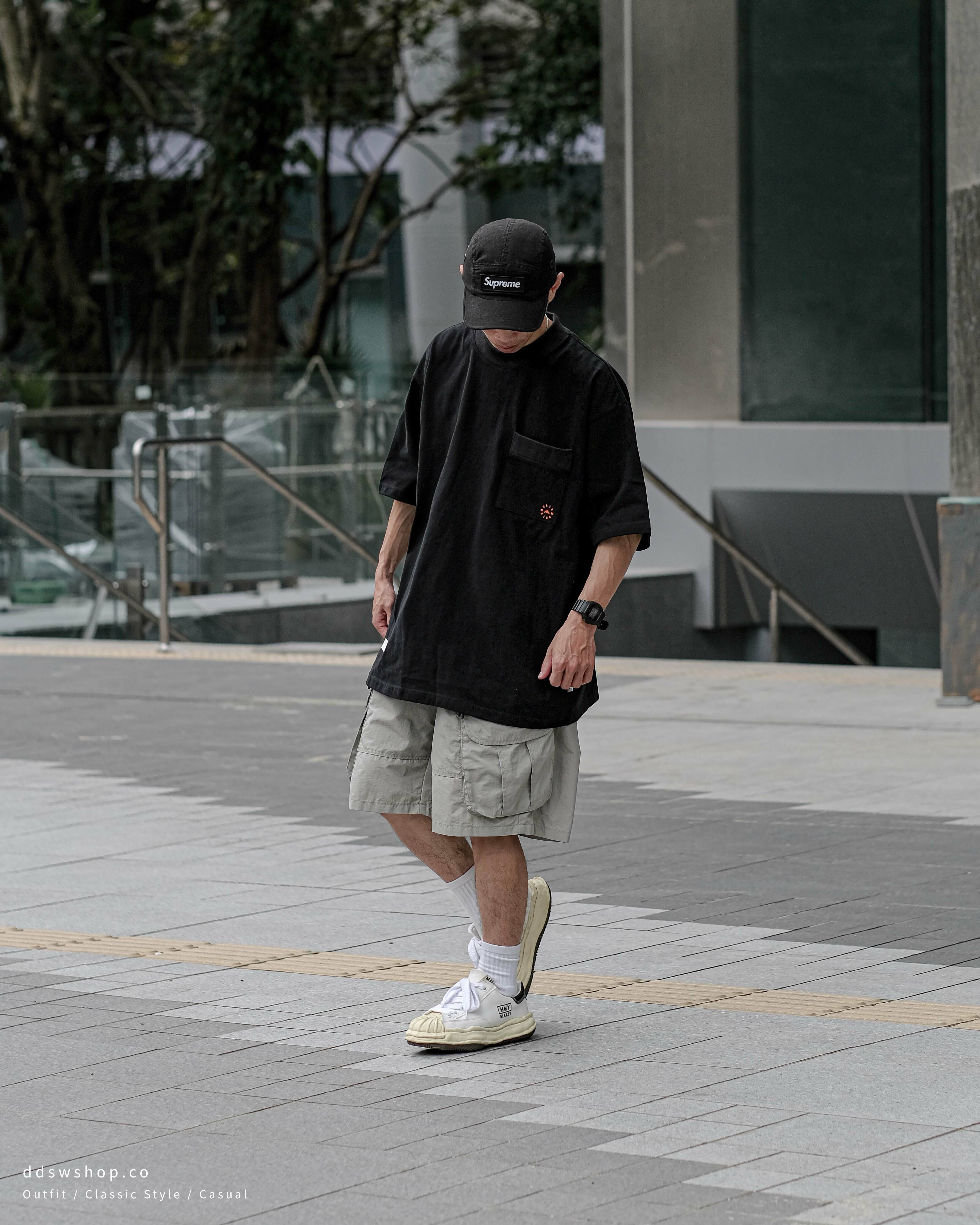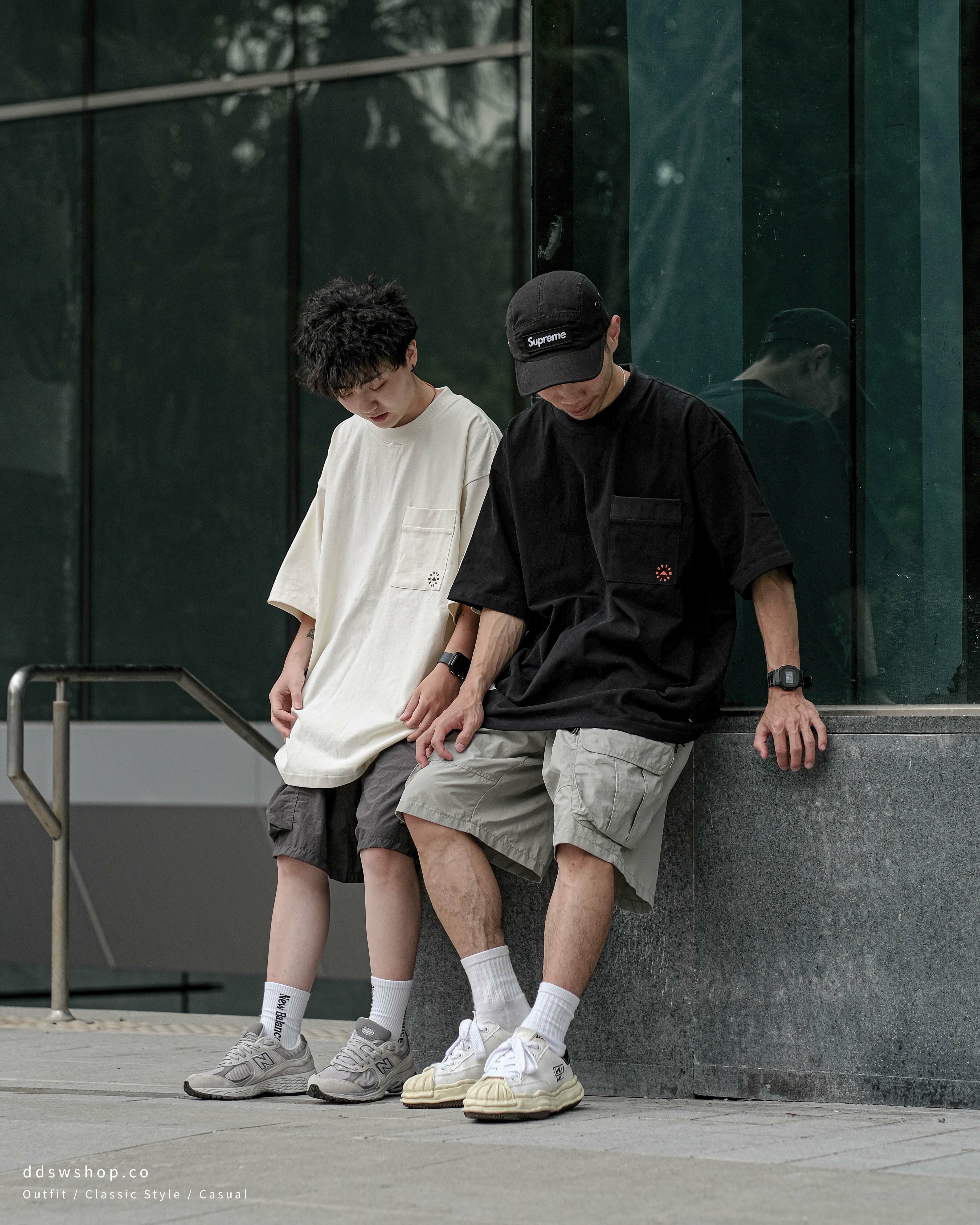 MIDUPDATE 重磅口袋印花短踢 黑色 米白色