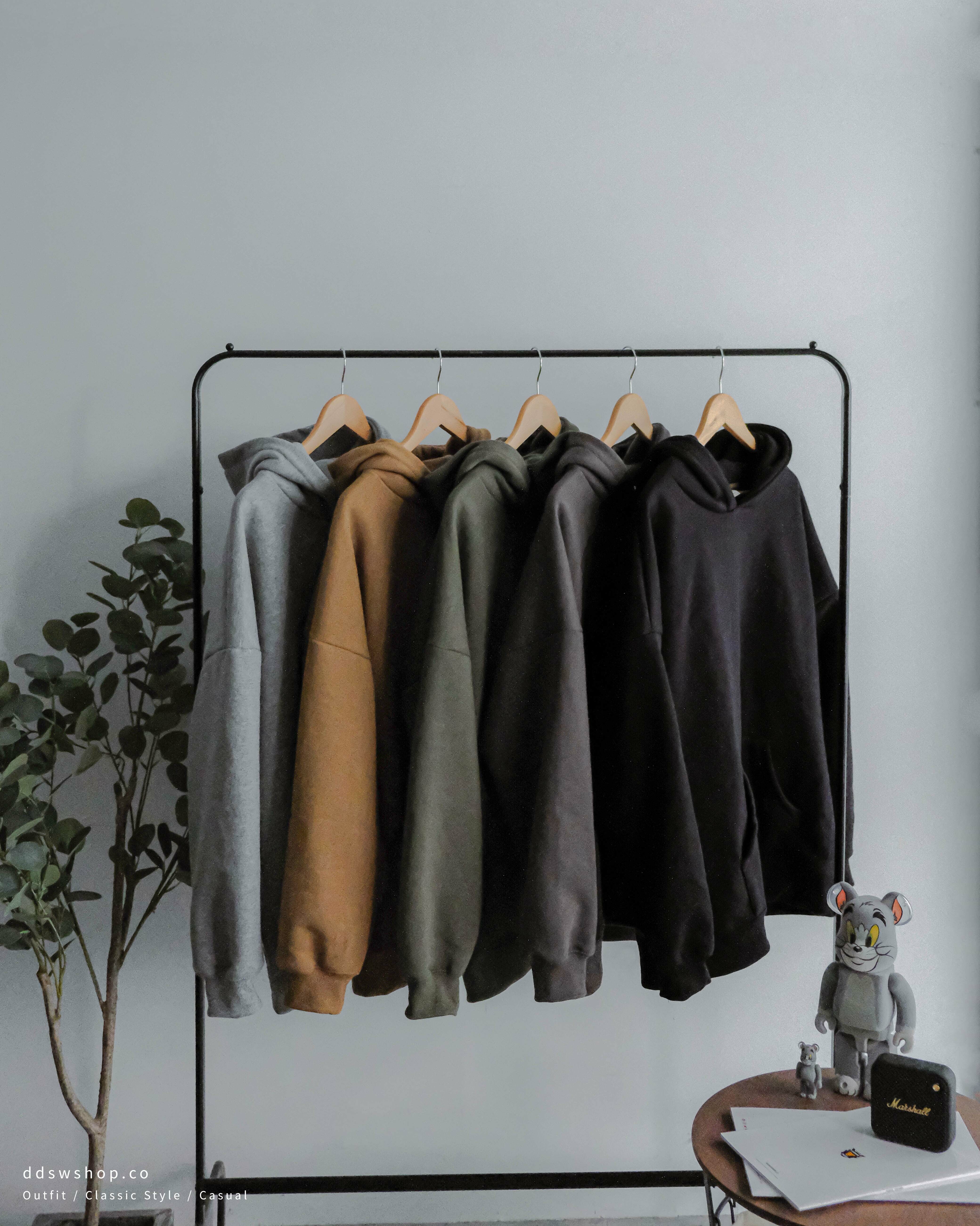 D.CLOSET 帽踢 重磅 寬鬆 口袋 內刷毛 黑色 炭灰色 灰綠色 棕色 淺灰色