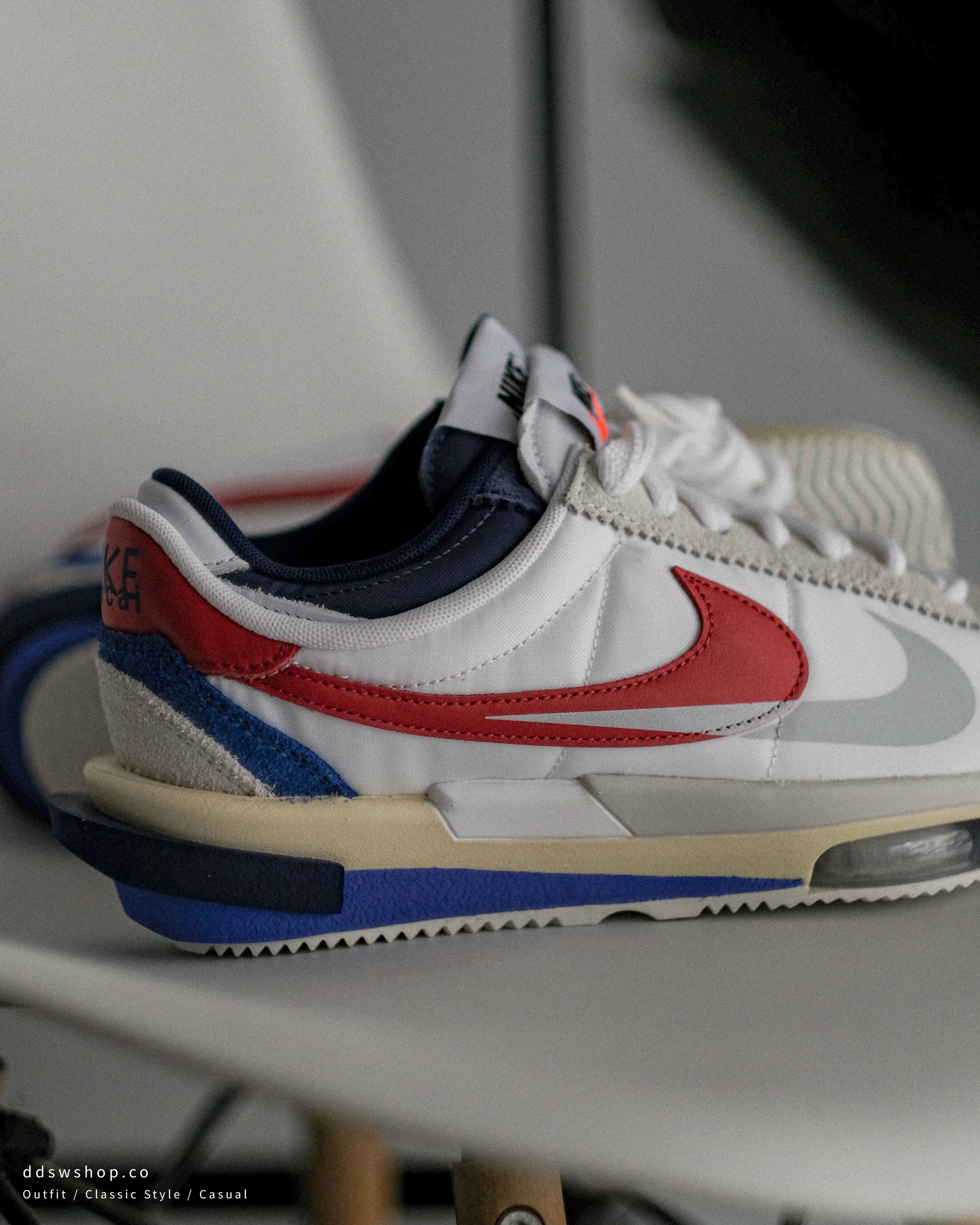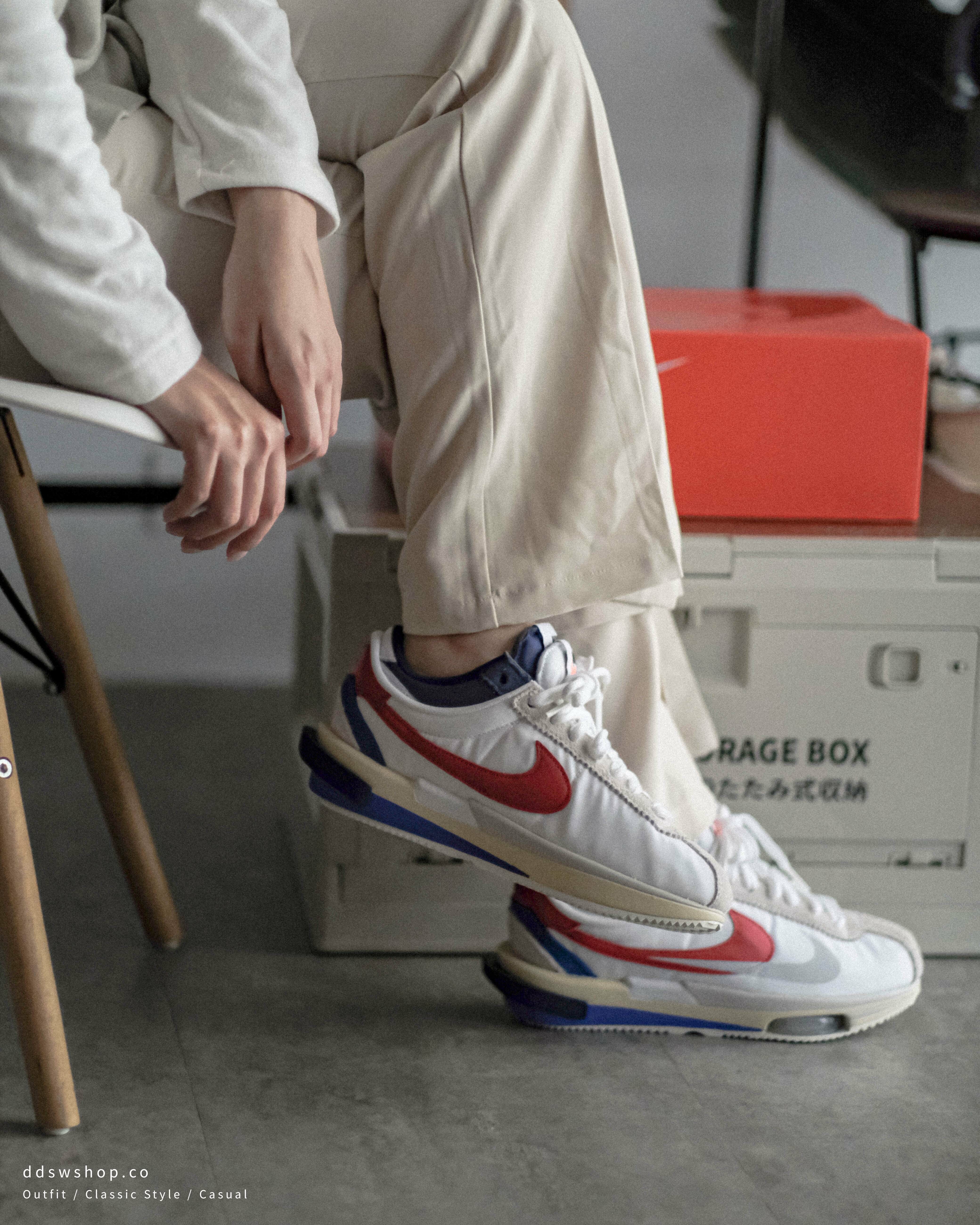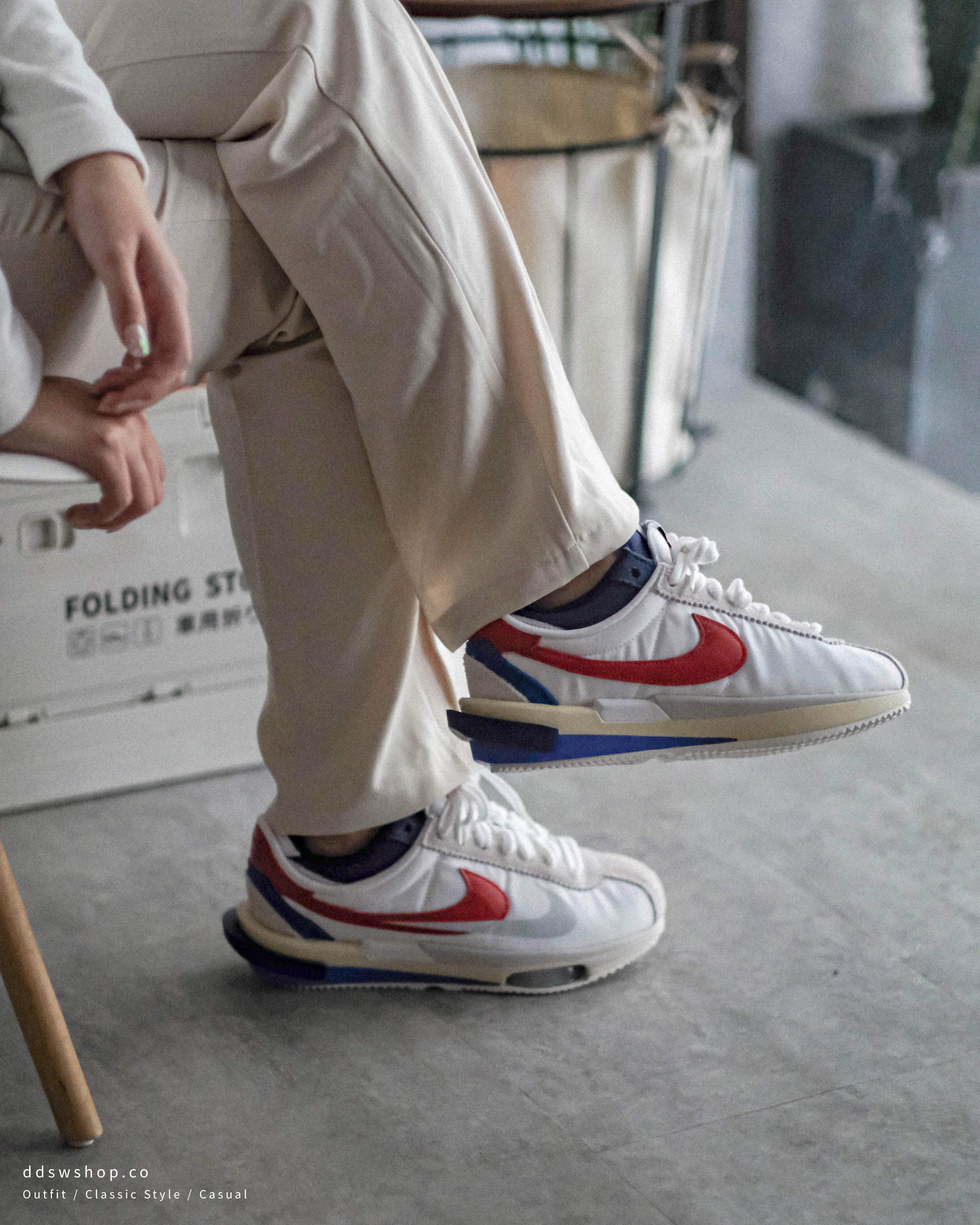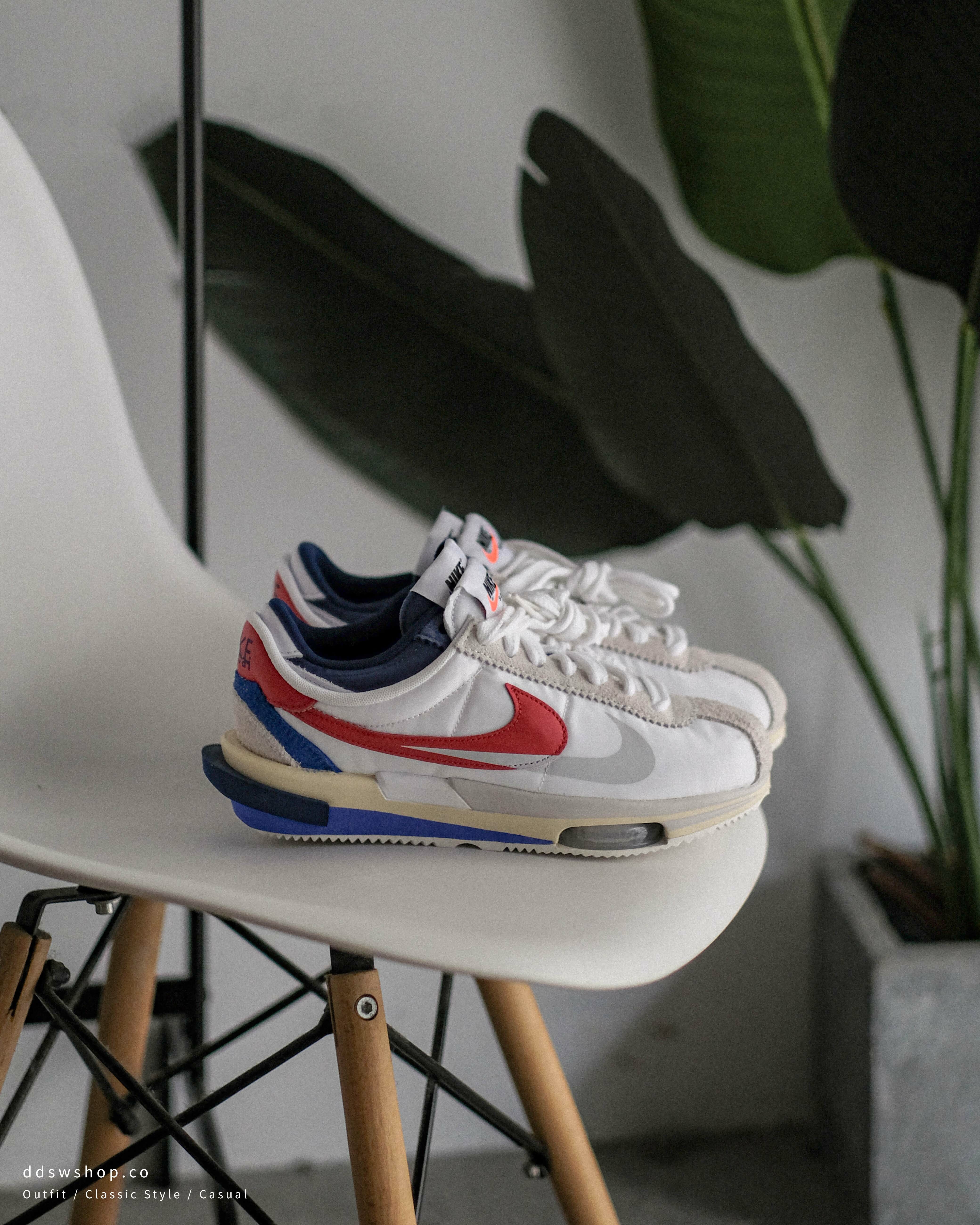 Nike Zoom Cortez x Sacai 聯名款 阿甘鞋 經典紅白藍 氣墊 DQ0581-100