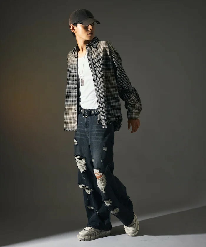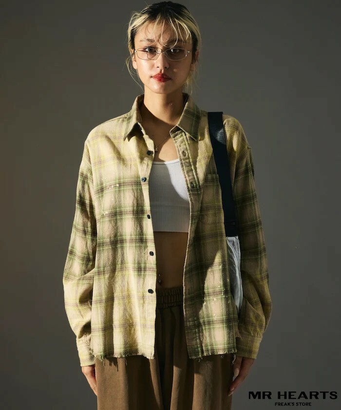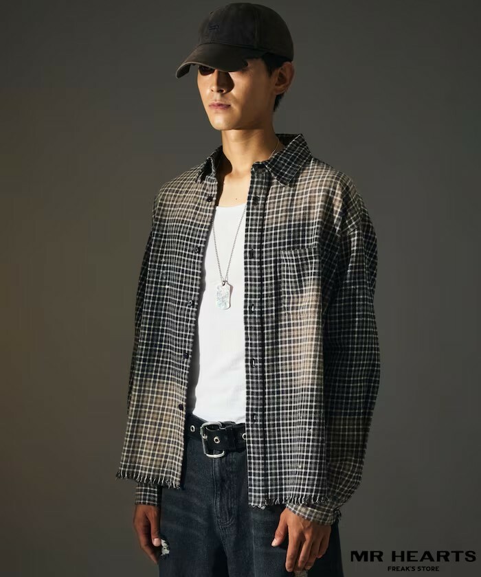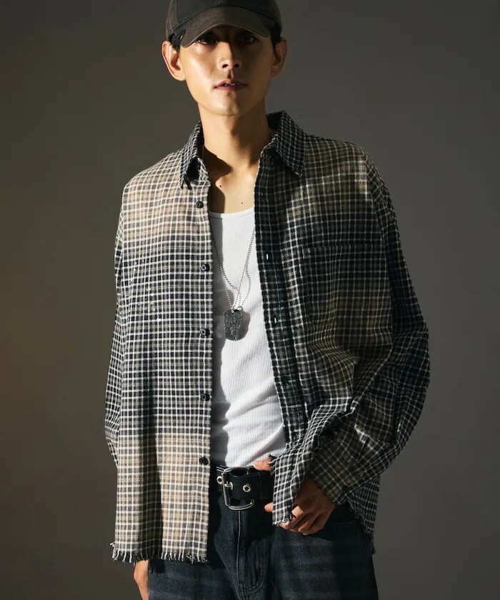 - 漂白造型格紋襯衫