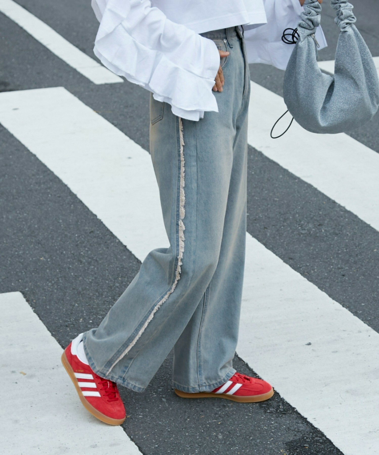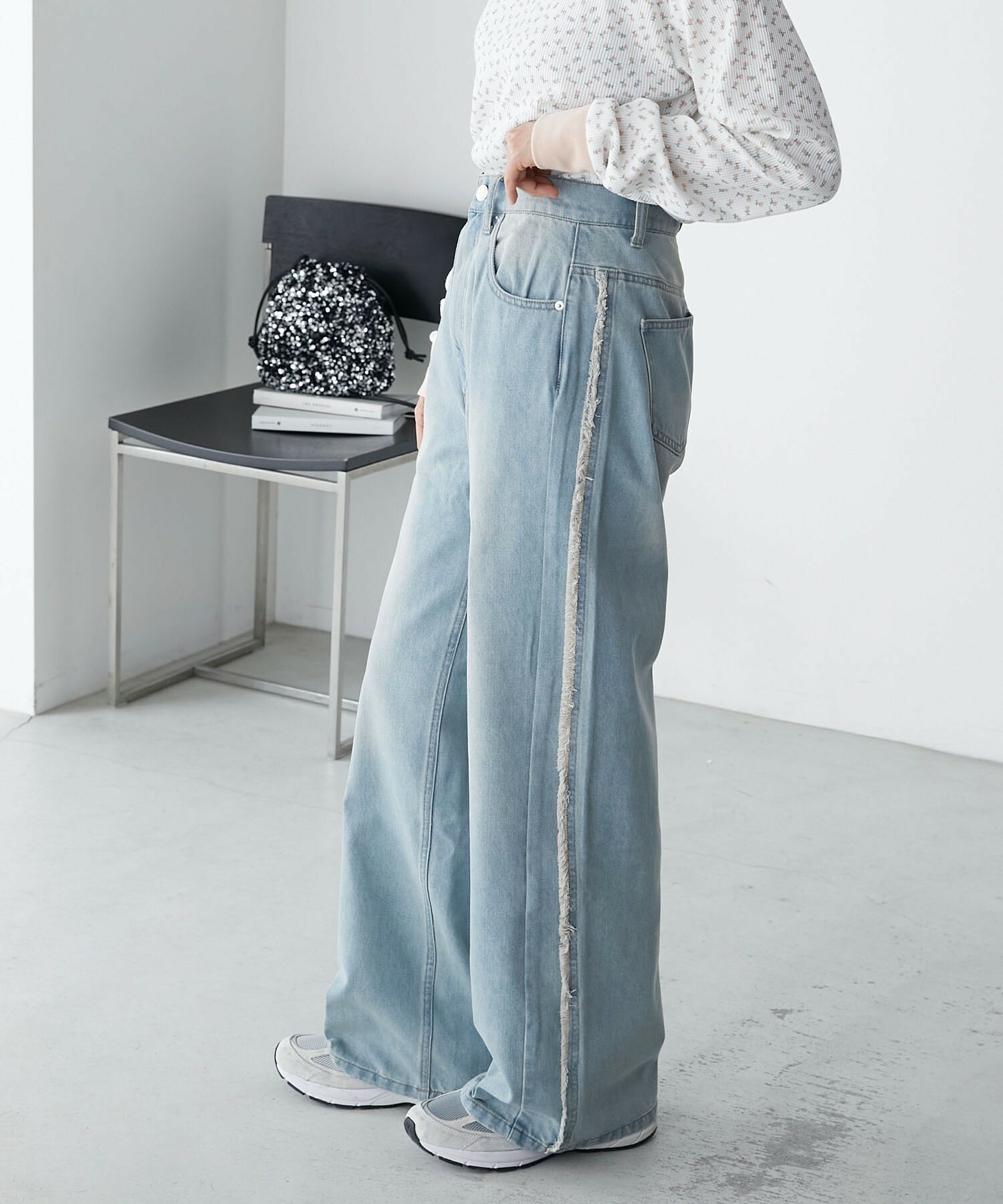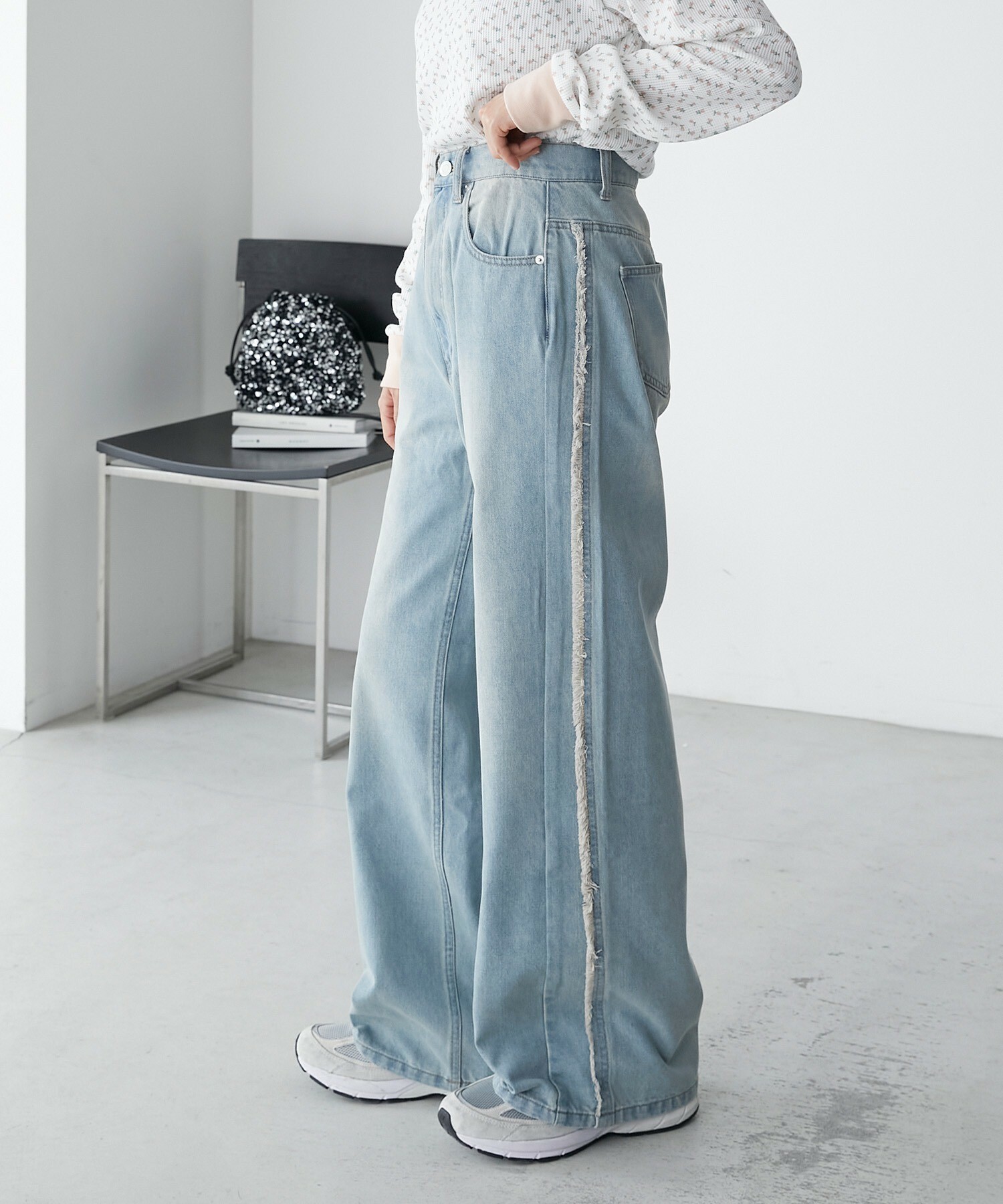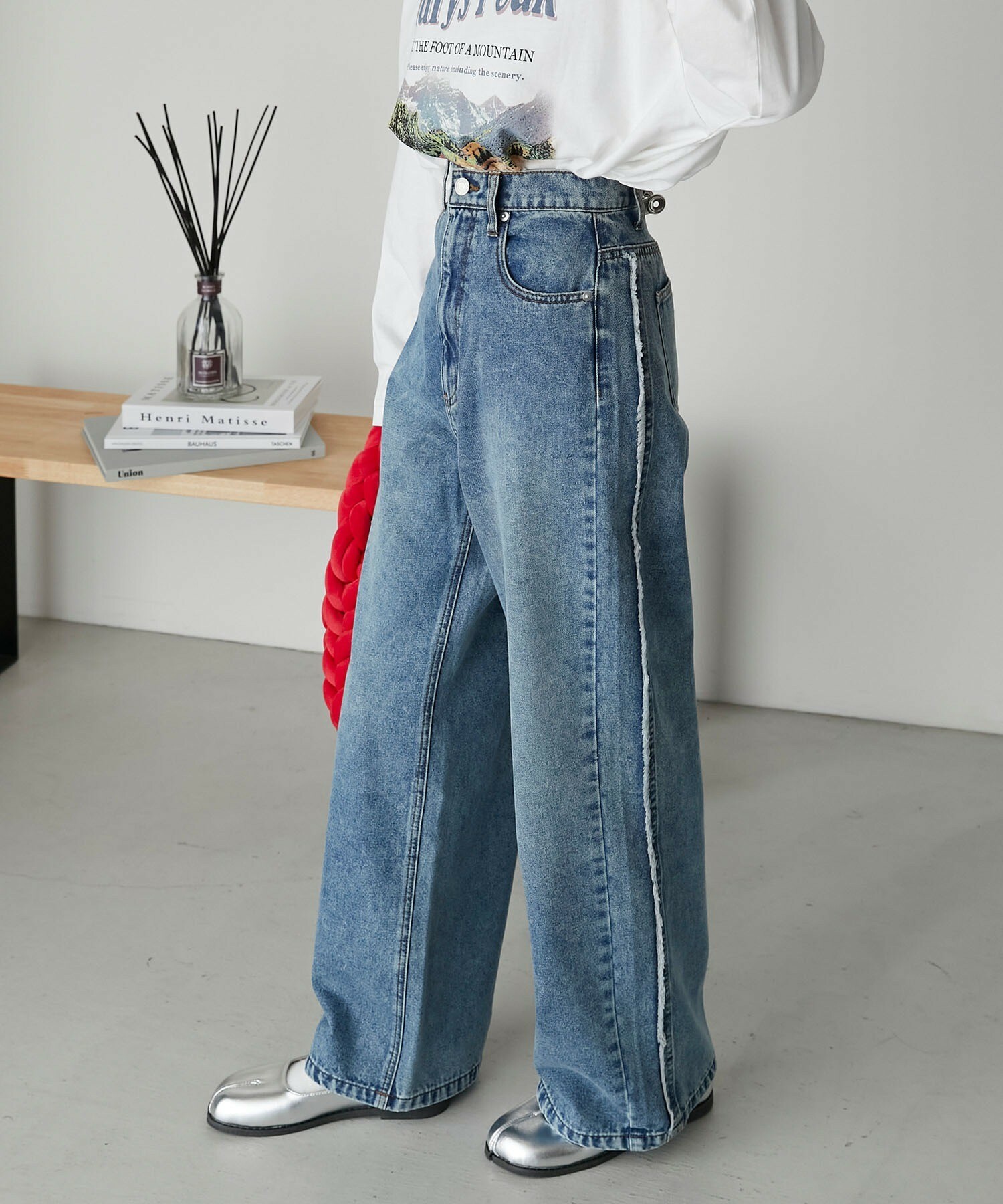 寬牛仔褲,厚度恰到好處,四季皆宜。