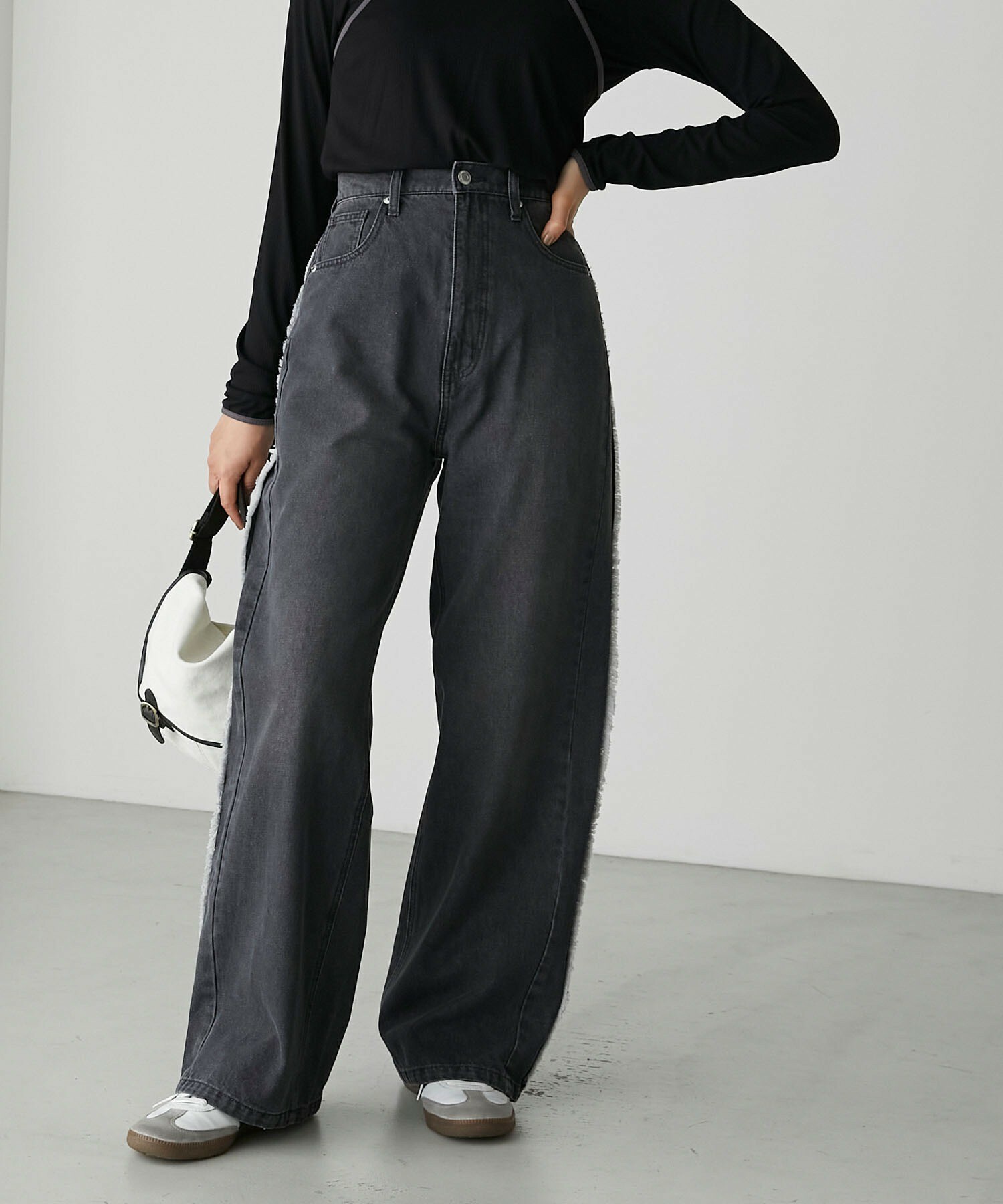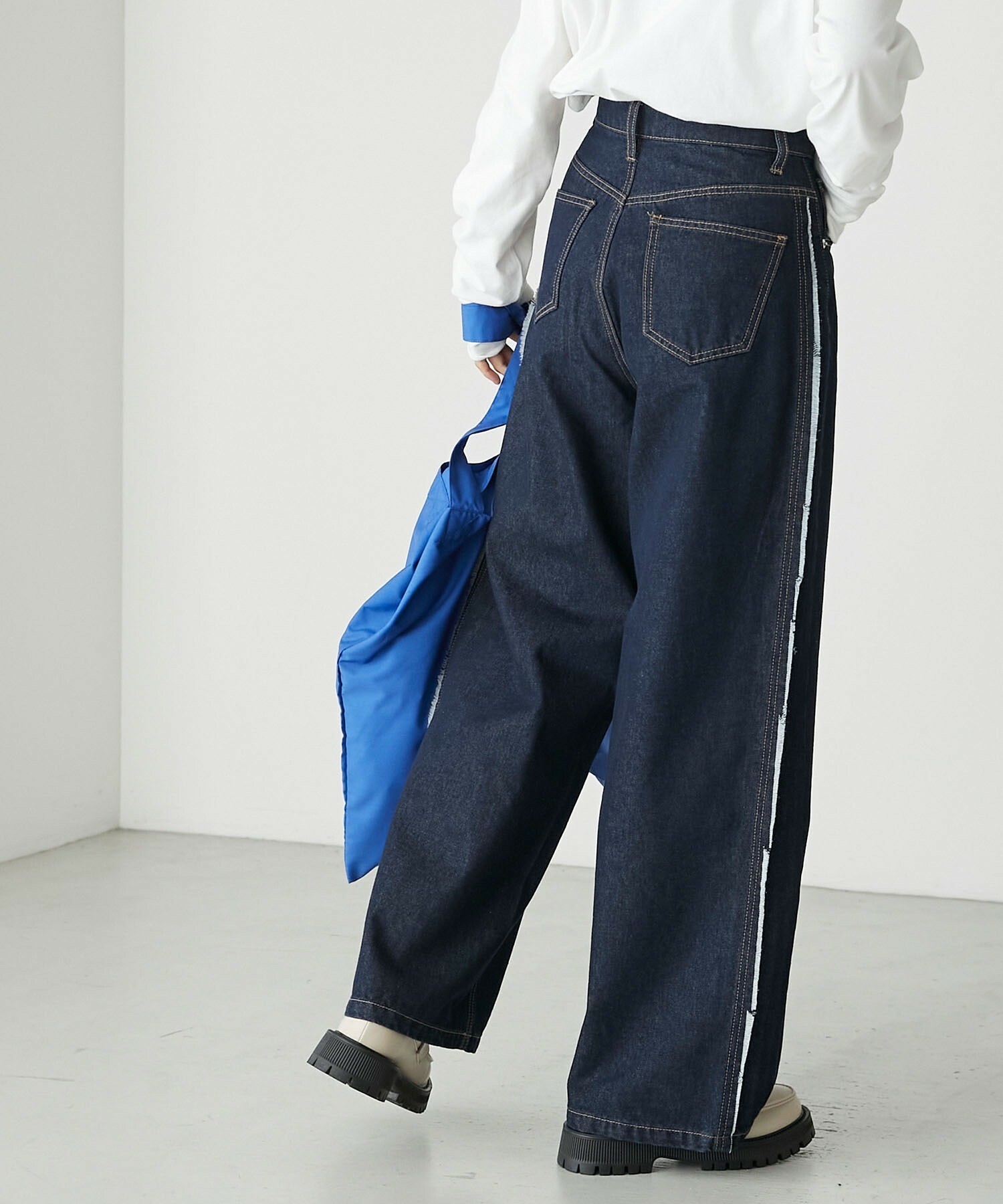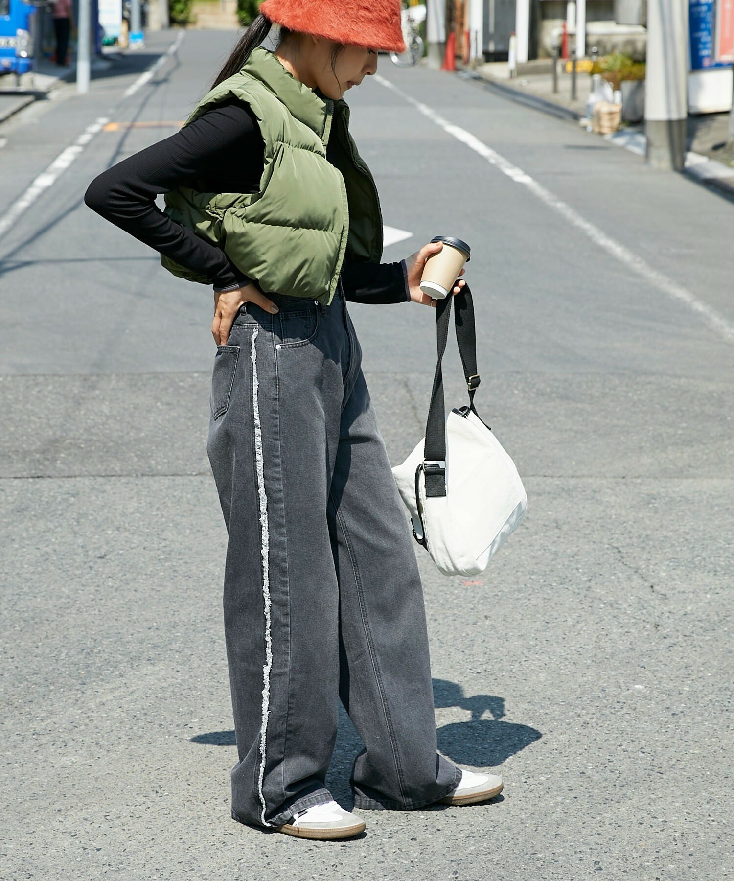 寬牛仔褲,厚度恰到好處,四季皆宜。