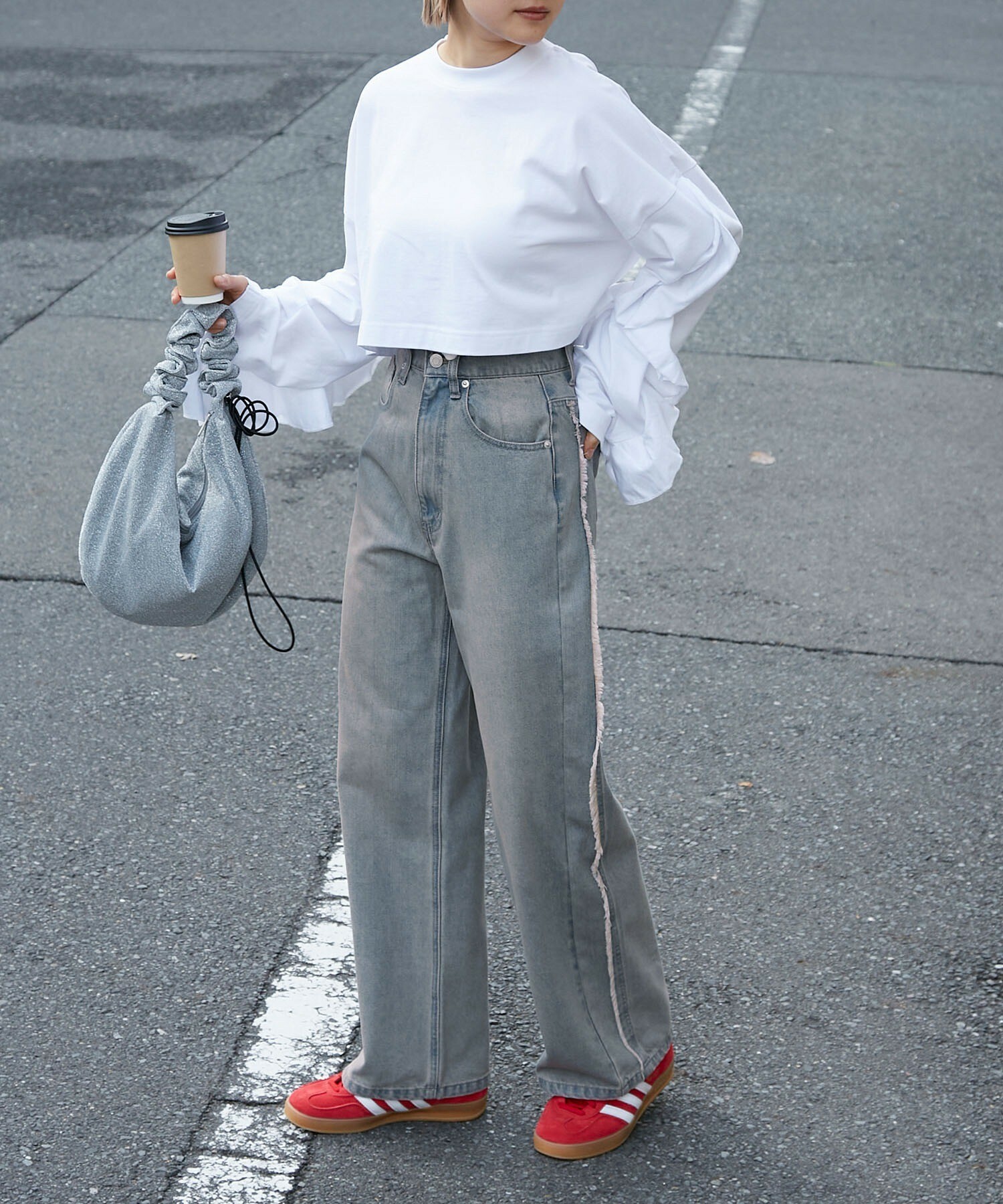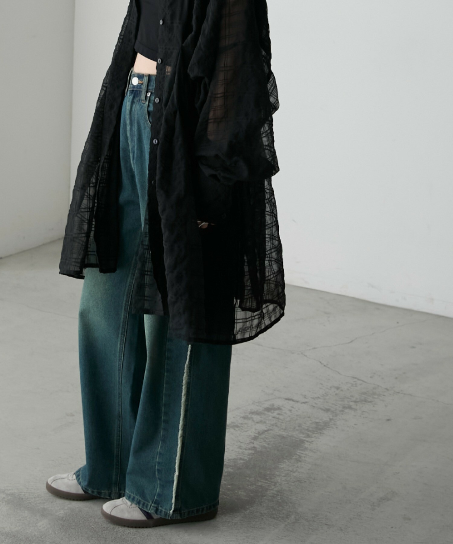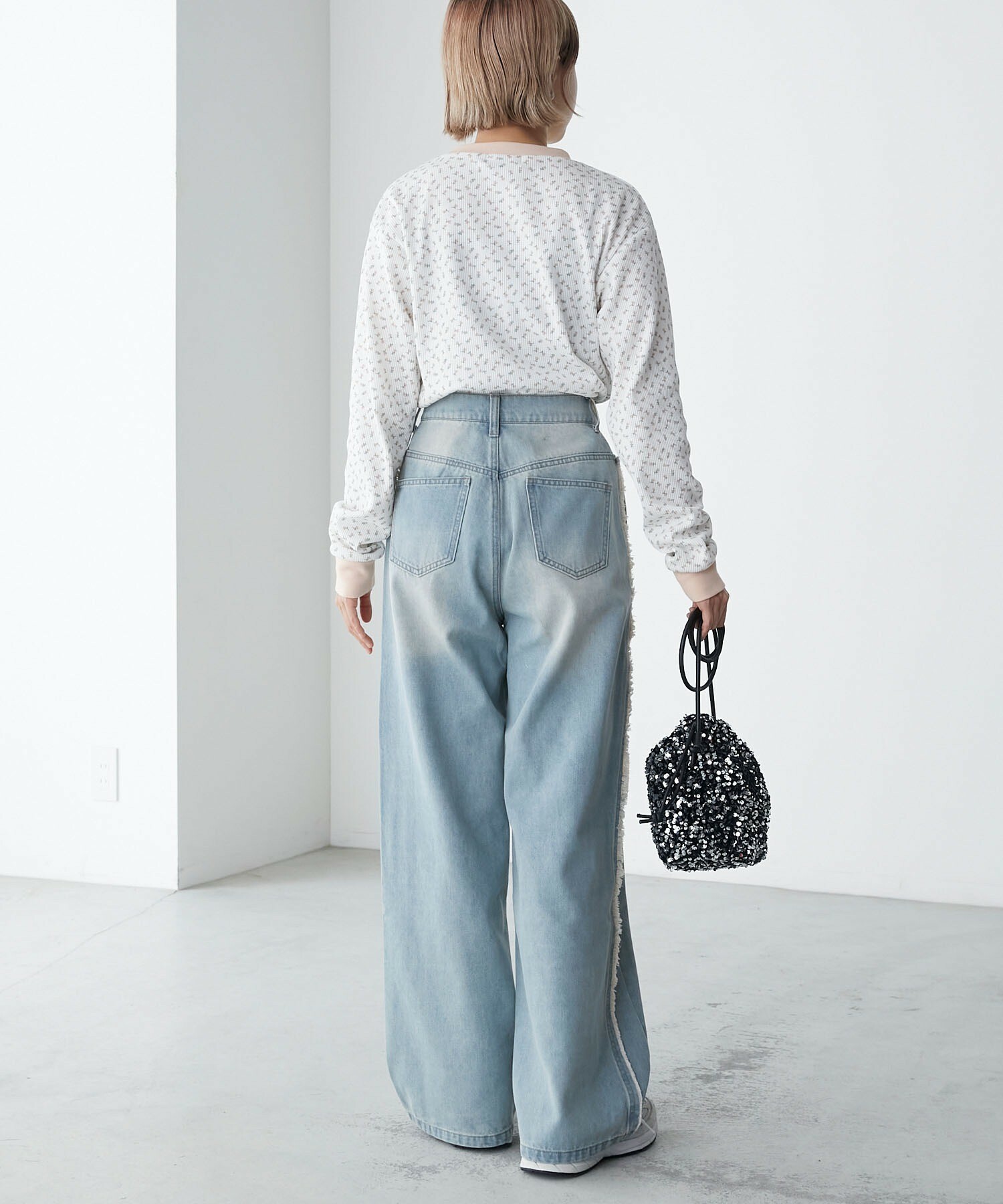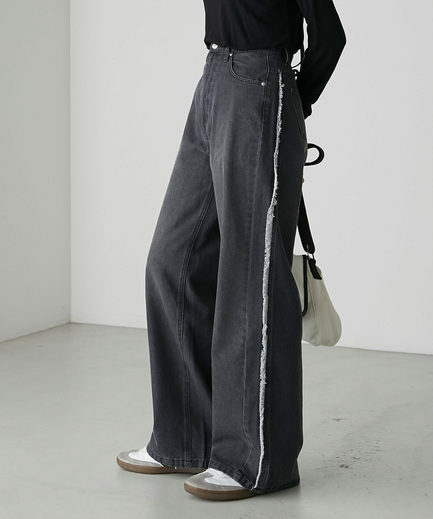 寬牛仔褲,厚度恰到好處,四季皆宜。