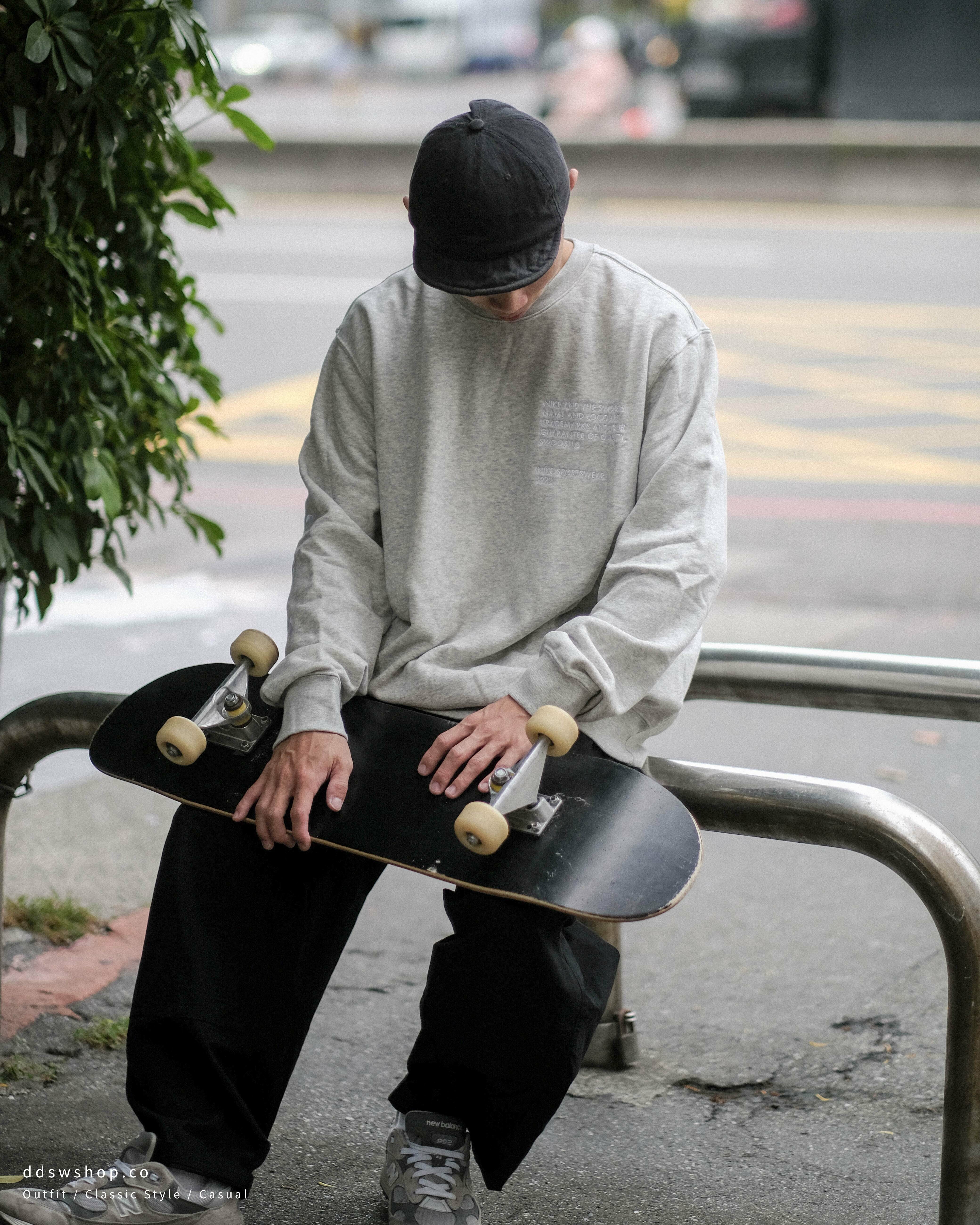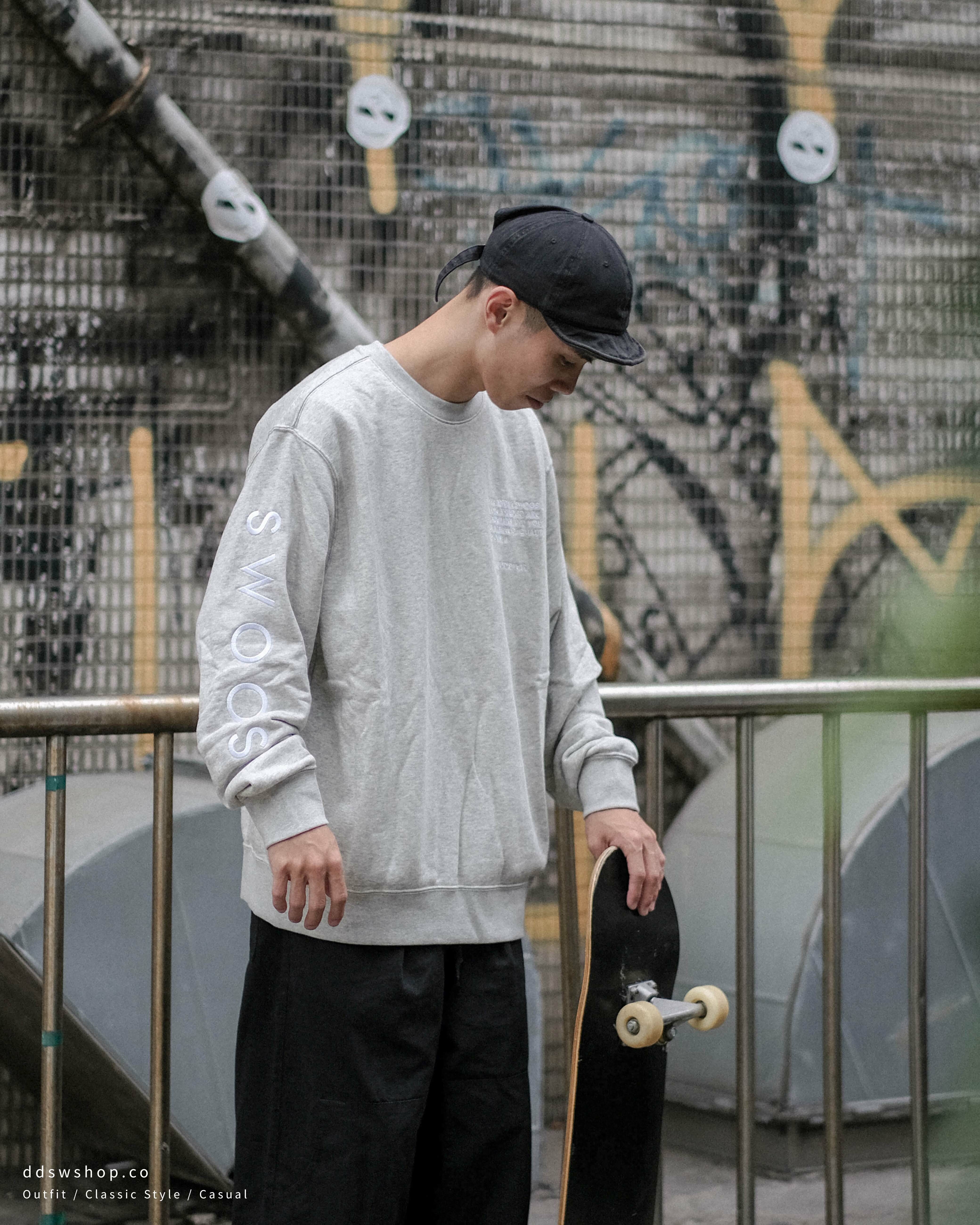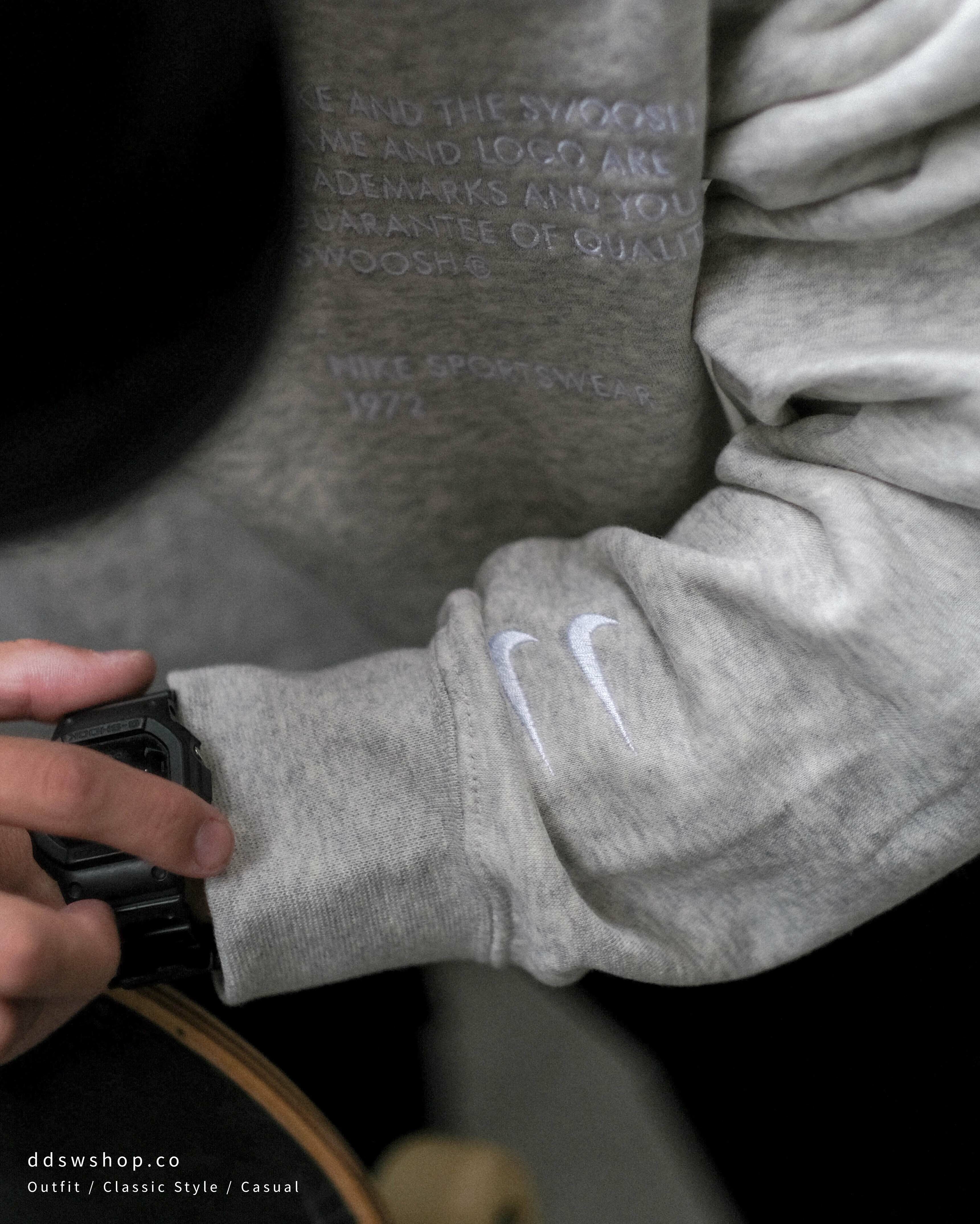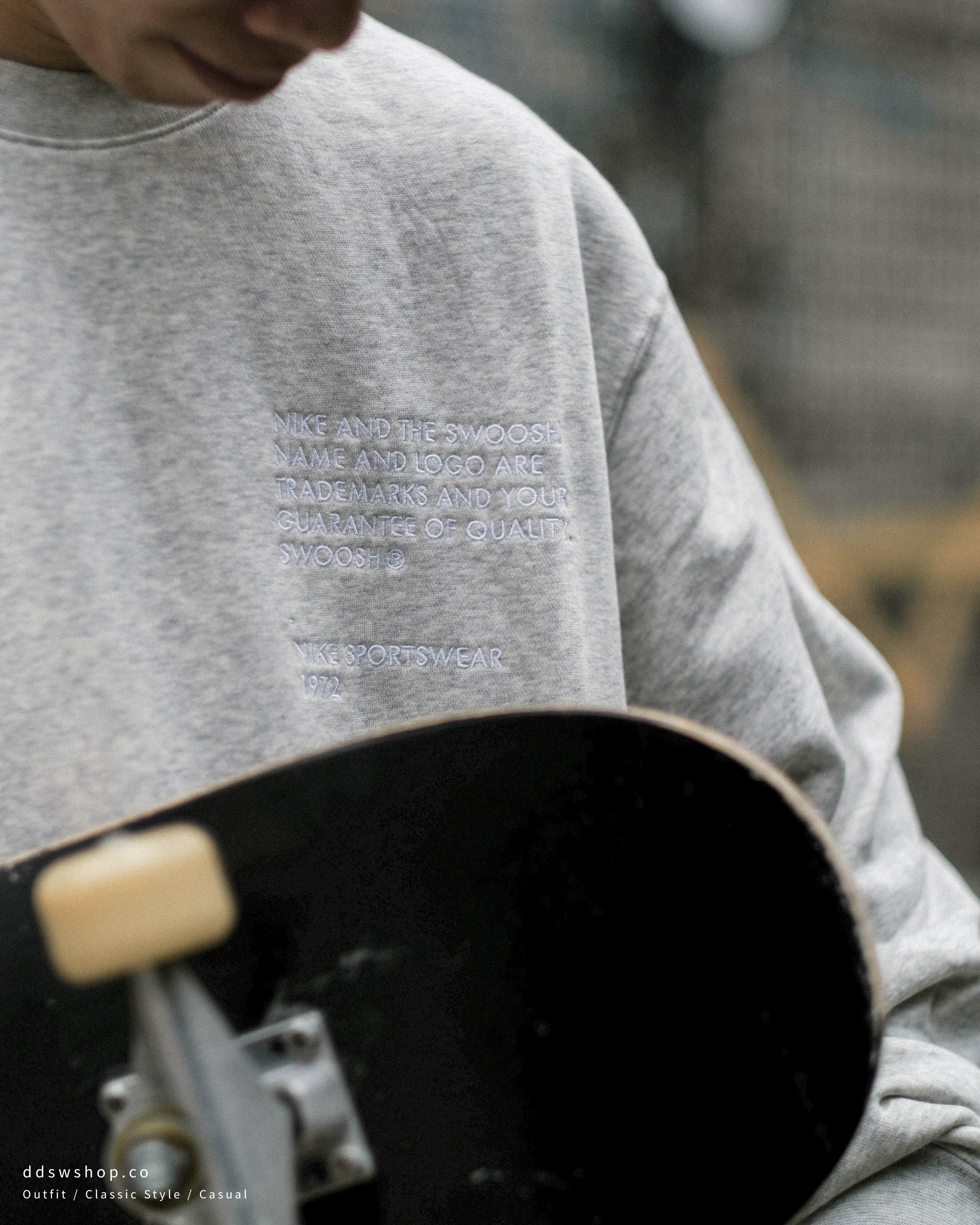 Nike NSW Swoosh Crew 大學踢 刺繡 標語 手袖Logo 灰色 DJ0466-050