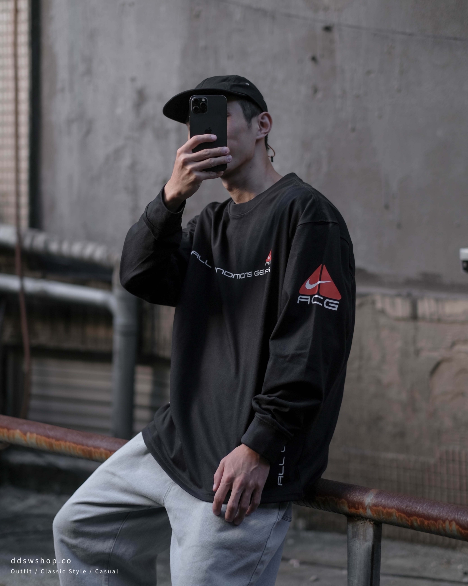 Nike ACG Shirts 薄長袖 串標 標語 經典 三角 Logo 黑色 DV9639-010
