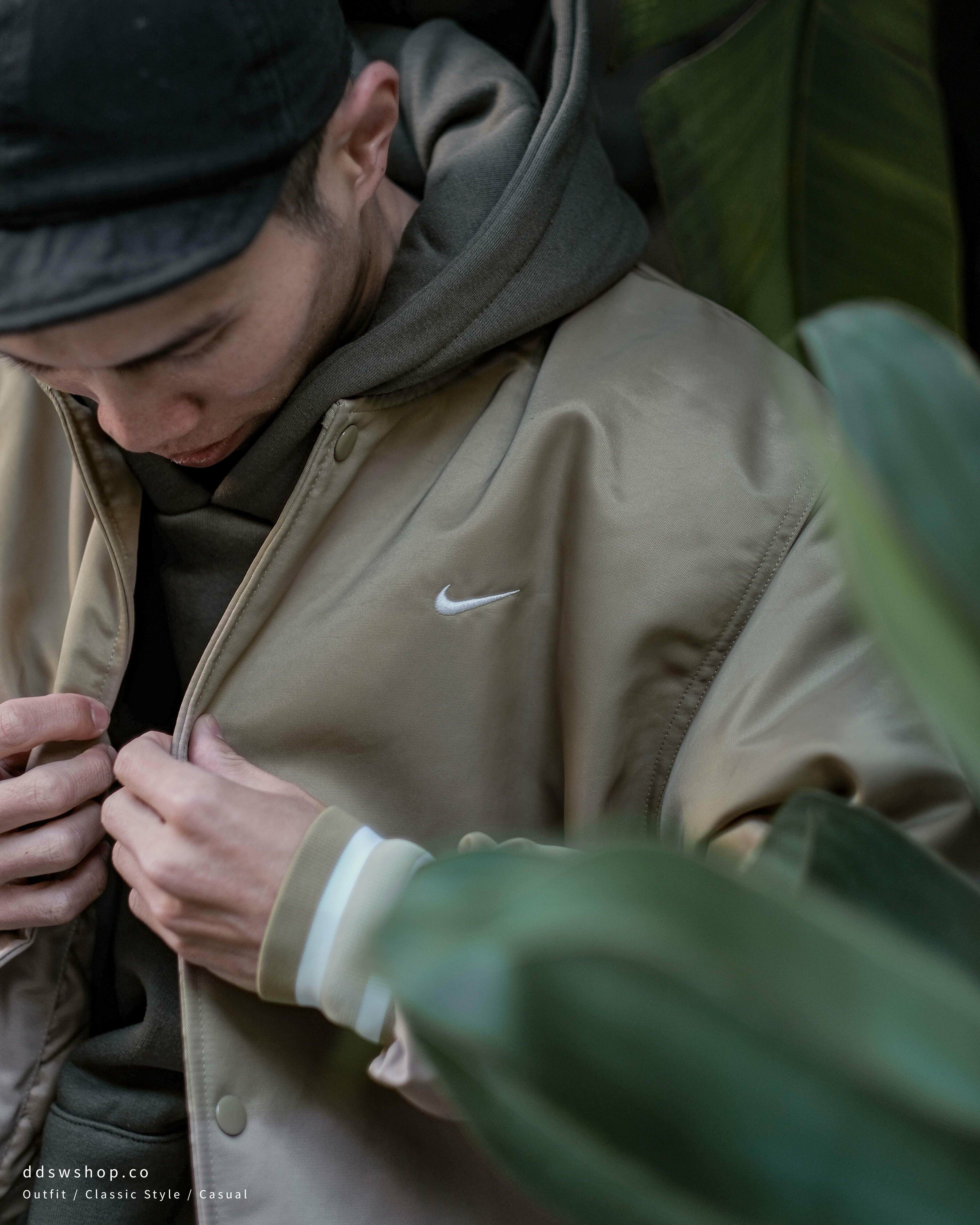 Nike Authentics Dugout Jacket 外套 棒球外套 質感亮面 鋪棉 刺繡Logo 奶棕 香檳金 DX0659-247 黑 DX0659-010