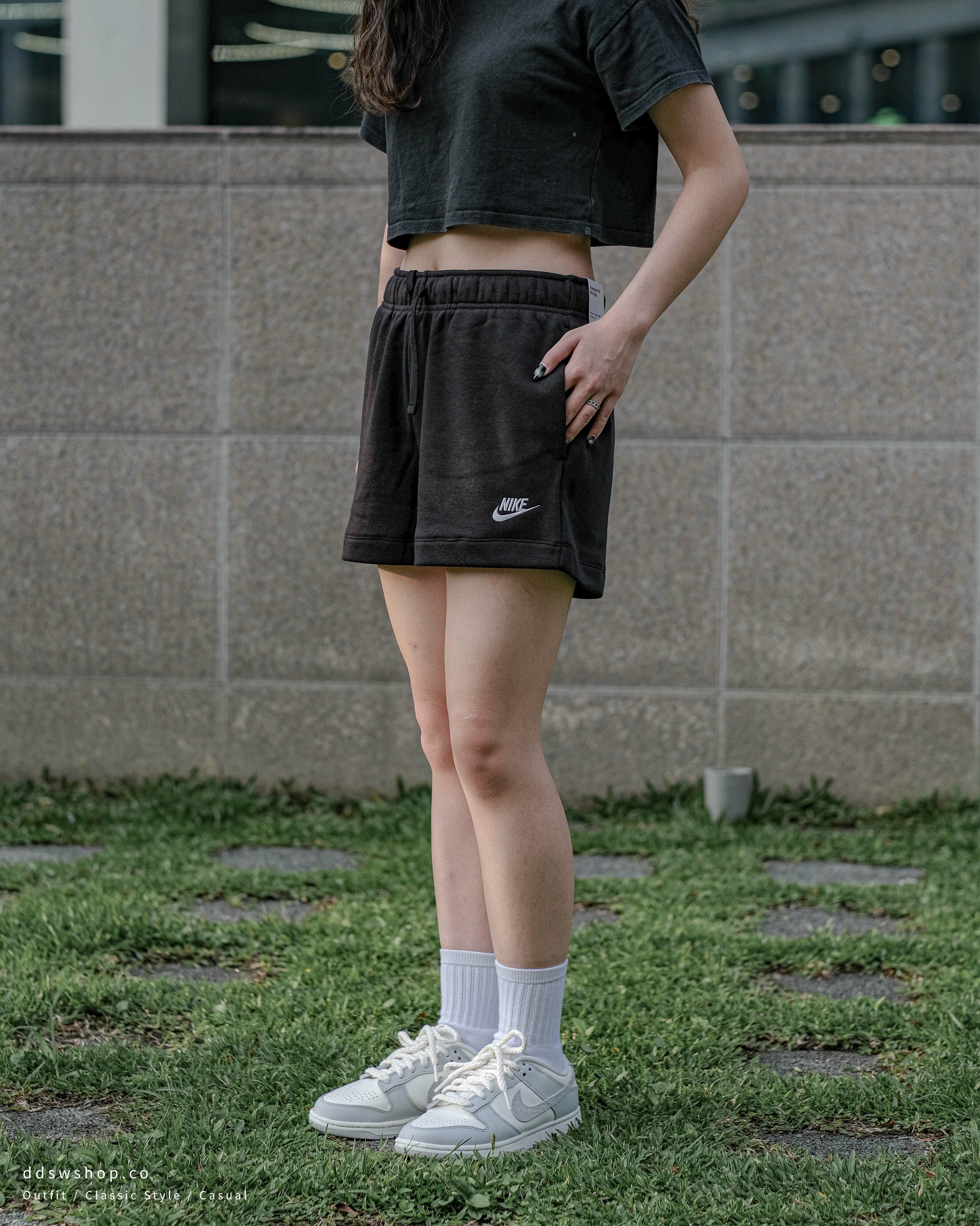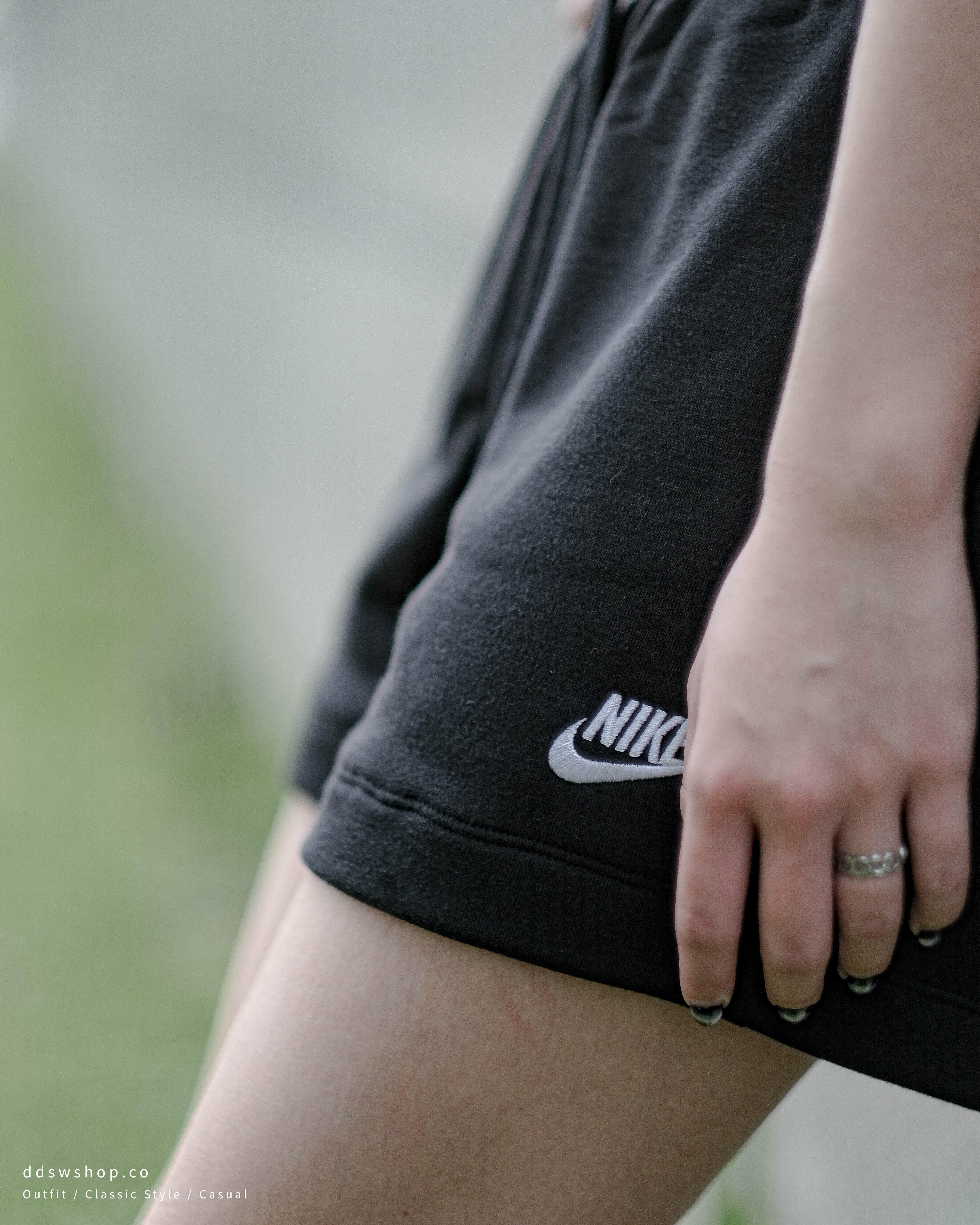 Nike NSW 短褲 棉褲 鬆緊摩毛 刺繡小Logo 黑色 DQ5803-010