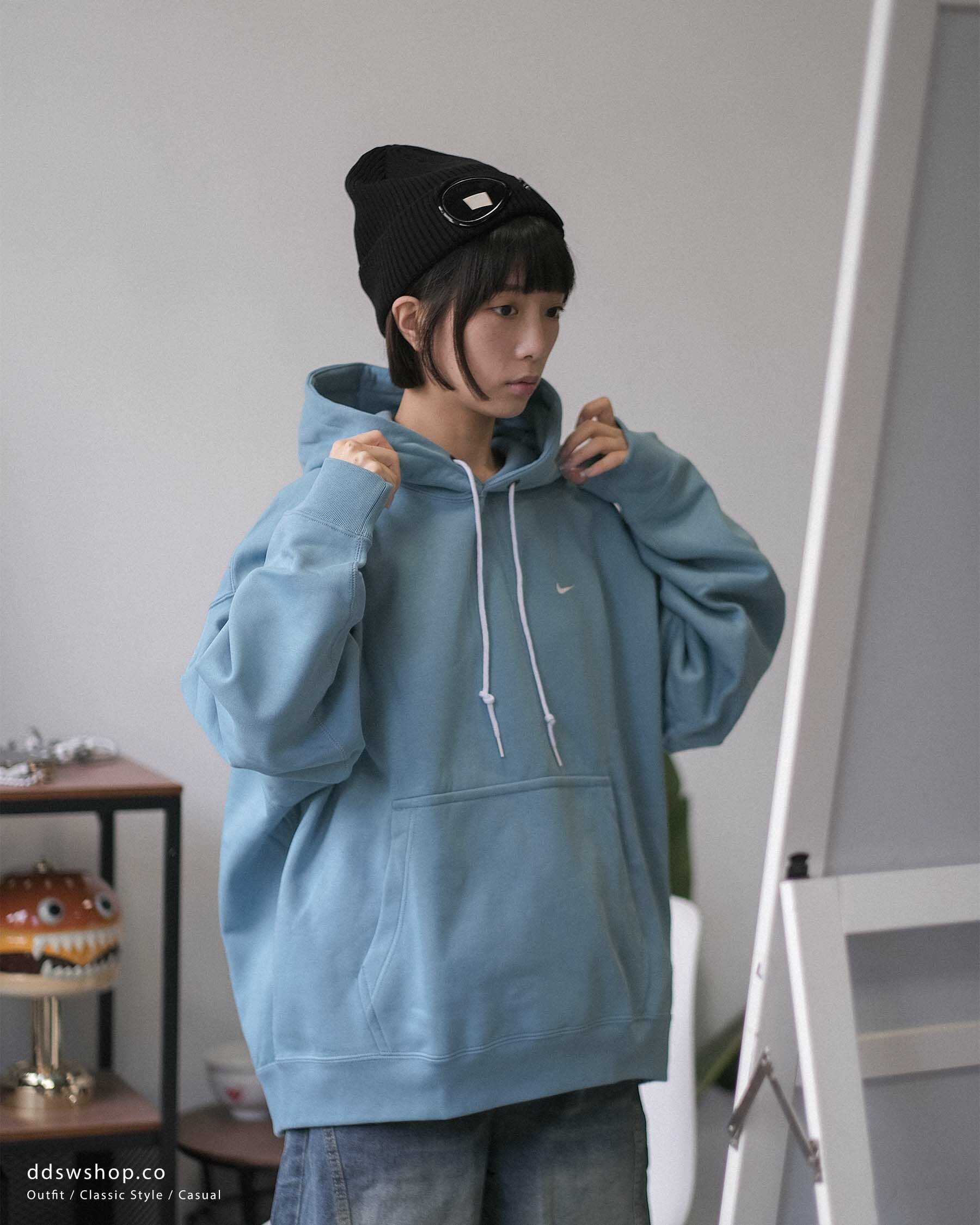 可調節抽繩設計,方便調整連帽的鬆緊,